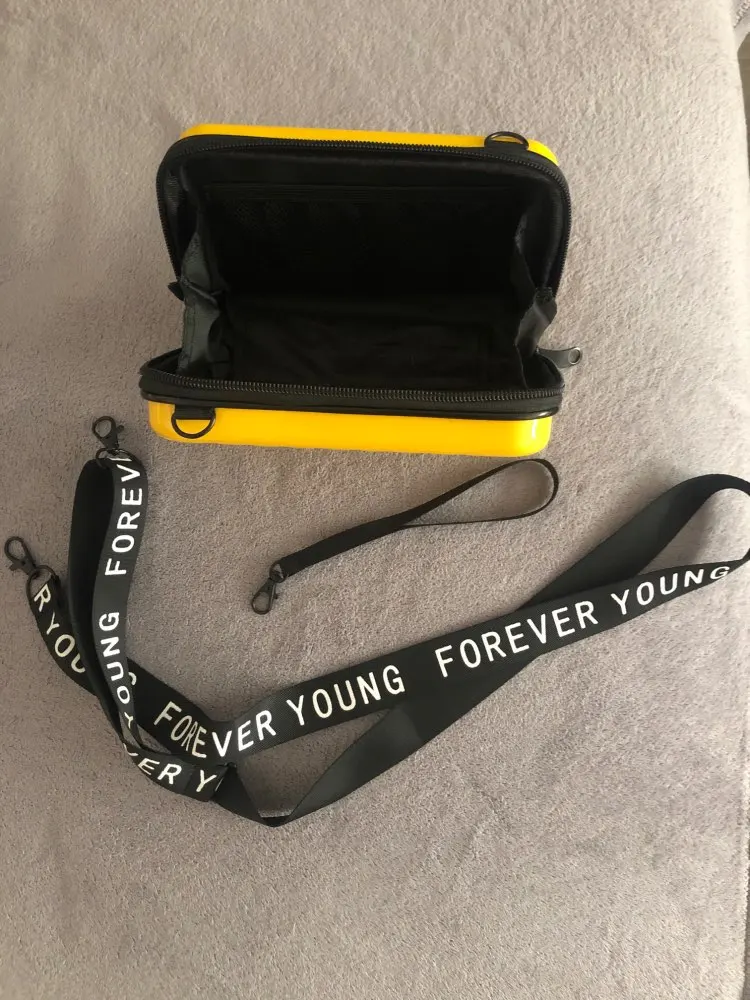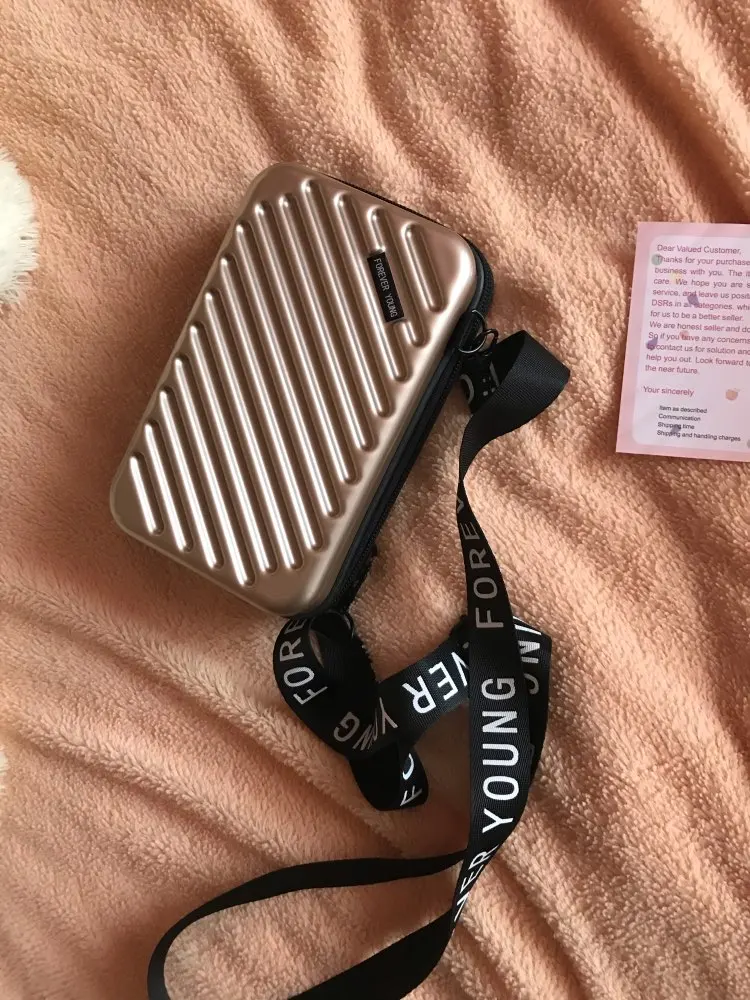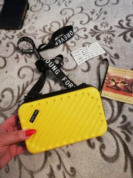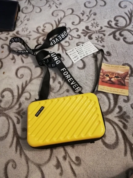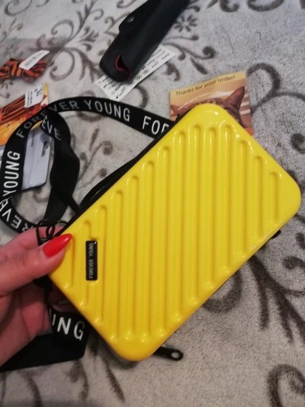 Rigid bag (as we know the suitcases usually). 2 possible fasteners: shoulder strap or pocket style. The store sends a message with the parcel tracking number. Received quickly (15 days). Very satisfied with my purchase, besides I remake an order for other colors.