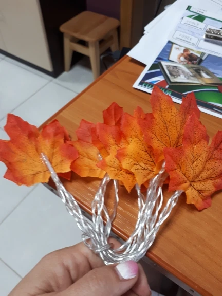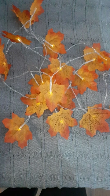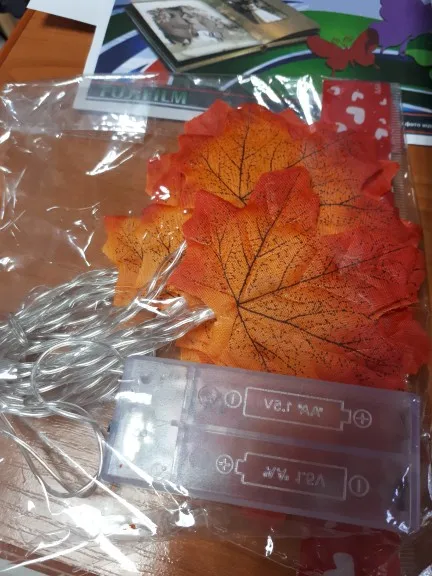 Package included 1* Maple leaf led string light Shell Material: Plastic Color: as the picture shows ( Delivery at random) Style: A: 1.5 M 10 Led B: 3 M 20 Led Length: A: 1.5 m B: 3 m Power supply: A: 2* AA batteries ( Not included) B: 3* AA batteries( Not included) Luminous flux: 2 lm Color temperature: 3000 K Input voltage: 3 V Waterproof: No Control method: Switch control Feature 1. Made of high-grade plastic material, the shell is lower heating, safe and eco-friendly 2. Maple leaf shape design, novel, warm, cosy and beautiful, very suitable for home, party, wedding decoration 3. Convenient to replace can be reused