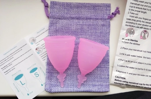 Why use these Menstrual Cups? 100% brand new Specialist brand 100% high-quality material Uses Medicinal Silicone so no chance for hurt to your body Size Guide: S: suitable for women who have not given birth to a child or women up to the age of 25 years. L: suitable for women who have given birth to a child or who are over the age of 25 years. The product is made of imported medical silica gel which is without irritation and absorption character and is widely used in health care products such as baby pacifiers, catheters, etc. This product does not contain dioxins and allergic substances meanwhile there is no peculiar smell and wet situation while using and daily activities are not restricted during its valid for a 10 year period! Specifications: Item Type: Menstrual Cup Material:100% Silicone Colour: Black, Blue, Pink, Grey, Purple, White Capacity Size S: 20ml Capacity Size L: 25ml Feature: Healthy, Safe, Easy to use, Environmentally friendly Size S Of Menstrual Cup: Outer diameter:1.57inches/Cheight:2.76inch Size L Of Menstrual Cup: Outer diameter:1.77inches/Cheight:3.15inch Package 1: 1pcs L or S Menstrual Cup + Cloth Bag + Instructions Package 2: 2pcs L or S Menstrual Cup + Cloth Bag + Instructions Package 3: 1pcs L and 1pcs S Menstrual Cup + Cloth Bag + Instructions Disinfection: Clean the menstrual period cup with warm water and soap. First with boiling water or disinfectant. Disinfection recommendations; Boiling water: a container filled with boiling water for 2-5 minutes. 蝴蝶月事杯主图1蝴蝶蓝色尺寸图04黑月事杯使用步骤月事杯尺寸推荐表 001粉色场景图灰色场景图紫色场景图黑色场景图蓝色场景图 How To Use? 1.Before handling the Menstrual Cup, make sure that your hands are thoroughly clean. 2.Sterilize the Cup before the first insertion. 3.Recommend to insert the cup by any of the following positions: sitting, squatting, kneeling or standing, try one of these positions and choose which is the most suitable for you. 4.To facilitate the insertion, you can moisten the Cup with water or lubrication gel if necessary. 5.Grip the Cup with your fingers and press. 6.Afterward fold the Cup lengthwise in half using fingers of the other hand. 7.Hold the Cup using fingers of one hand at the possible lowest position. 8. Insert cup in the vagina obliquely, towards the back. 9.The proper position of the Cup is lower than tampons. Upon insertion in the vagina, release the fingers and let the Cup unfold fully and adhere to the vaginal wall. 10.You can disinfect before and after using it. Matters needing attention : No allergic reactions so it does not lead to mould and urinary tract infections. Can apply to all women, but women who have no sexual experience are not recommended to use this product. Capacity description: S size Menstrual cup is suitable for Normal flow. L size Menstrual cup is suitable for Heavy flow. We recommend that you buy two different sizes of menstrual cups to handle different menstrual conditions.