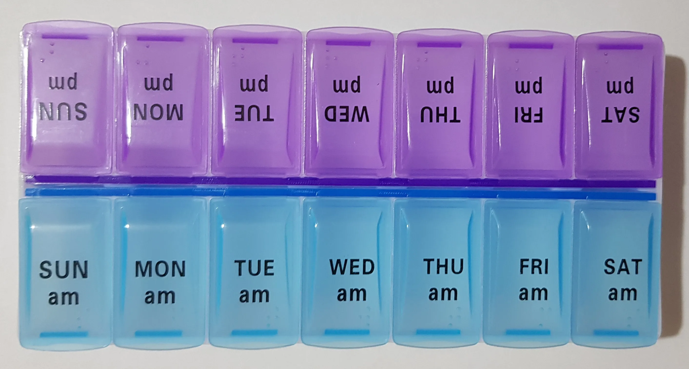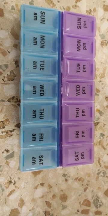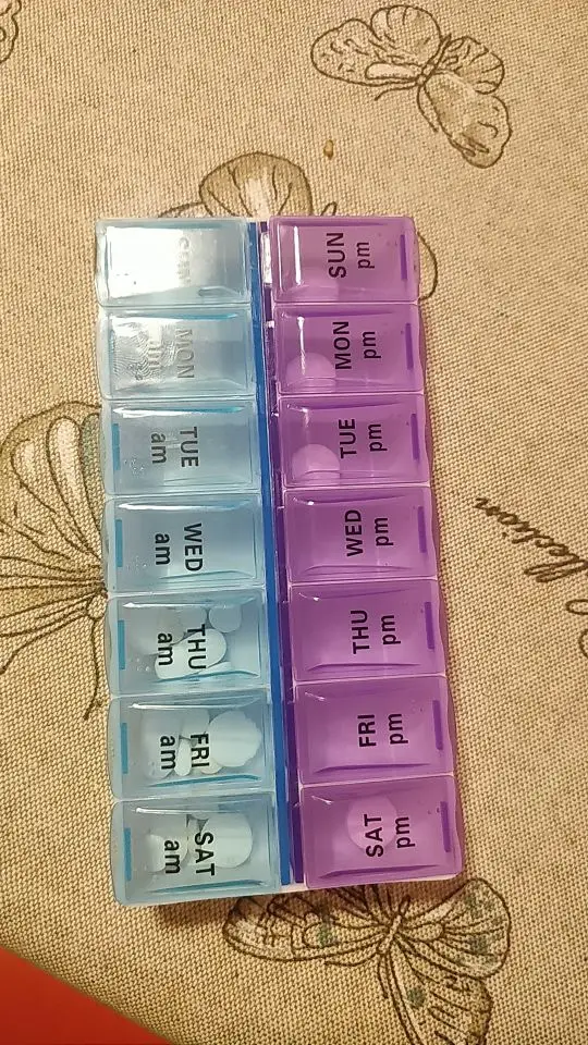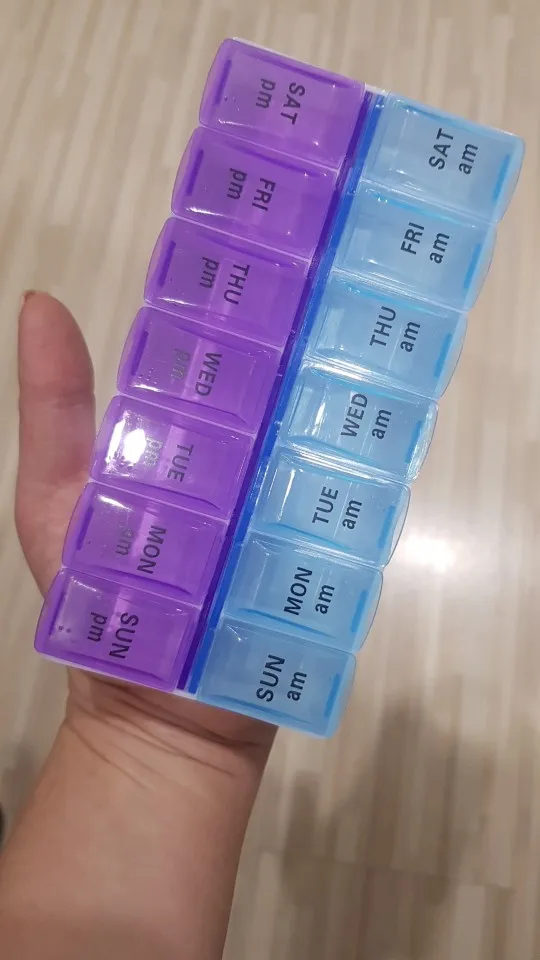 14 Grids for 7 Days Weekly Pill Case for Medicines and Tablets a Dispenser or Organizer Pill Box Splitters and Jewellery Storage Box With Clip Lids Features: 1. 14 grids daily, weekly pill storage box. 2. Can be used to store pills, jewellery or small items. 3. It is also ideal for storing trinkets or items, such as earrings, beads, nail art tips and more. 4. 2 lines, each line ranges from Monday to Sunday. Specifications: Product Name: Small 14 Grids Pill Box Product Weight: about 50g Product Material: PP Product Size: 14.5*7*2.5cm/5.70*2.75*0.98"