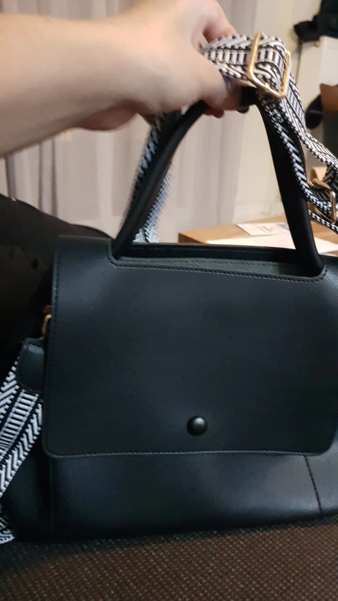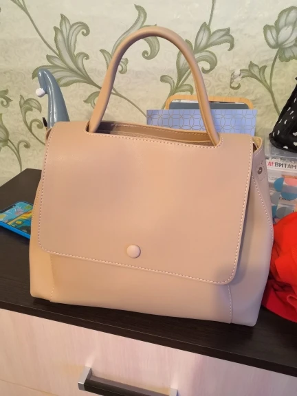 Handbag chic for its price! The sutures are even, without sticking threads, the accessories are excellent, all buttons, the fasteners are working. The smell is minimal. Thank you store!!!