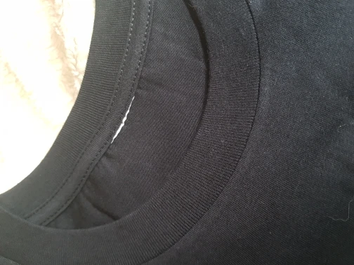 We have chosen the black color, it is intense, not faded. The transfer is perfectly placed and correct and the colors as described. Very pretty. The shirt is correct in size, length and sleeves. I Ordered for a teenager with a 46cm back and 86cm chest. It is perfect. What surprised me is that it comes without any label, and the one on the neck is obviusly cut off. The composition is light, ideal for summer, but I think it is not entirely 100% cotton, it will be mixed with polyester.