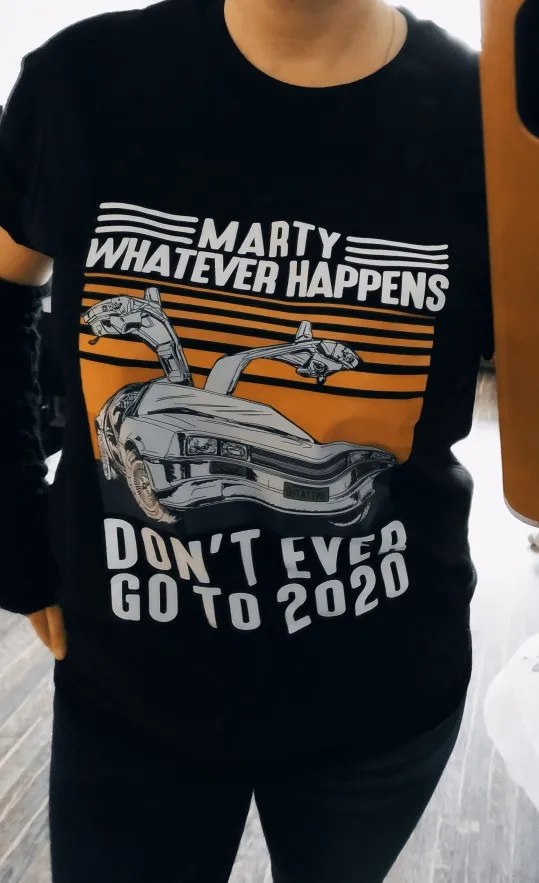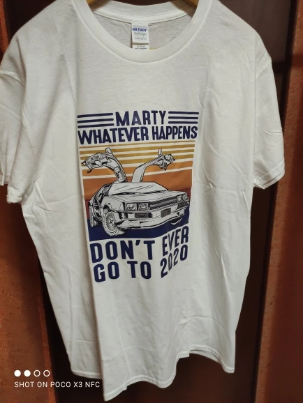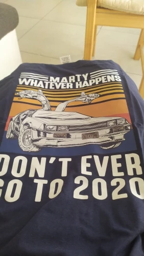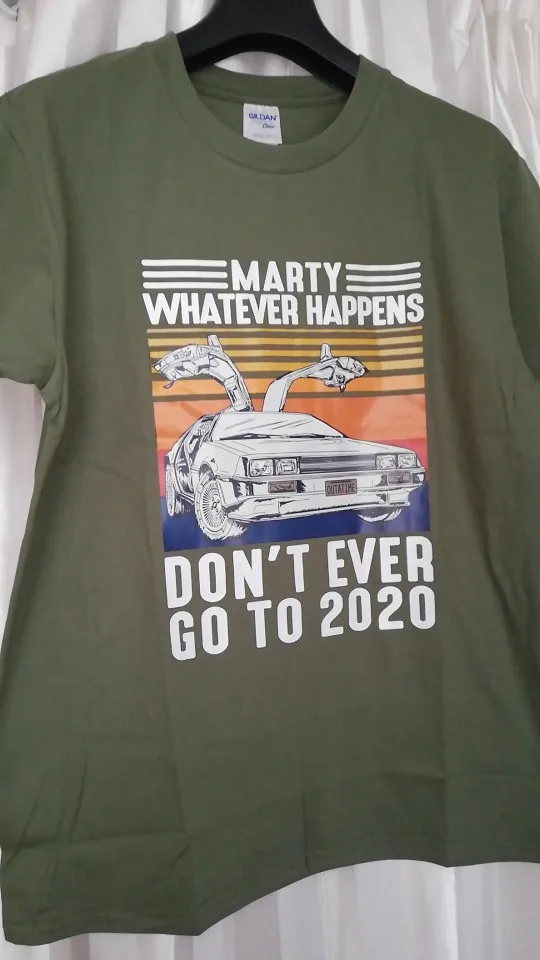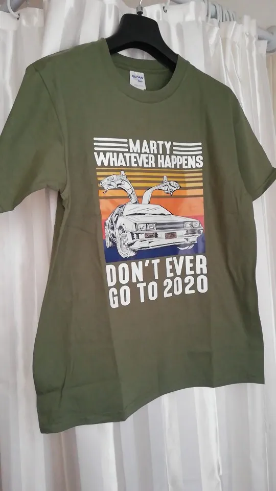 Men's "Back to the Future" Cotton Tee Short-Sleeved, Off-White Top "Marty, Whatever Happens, Don't Ever Go To 2020"