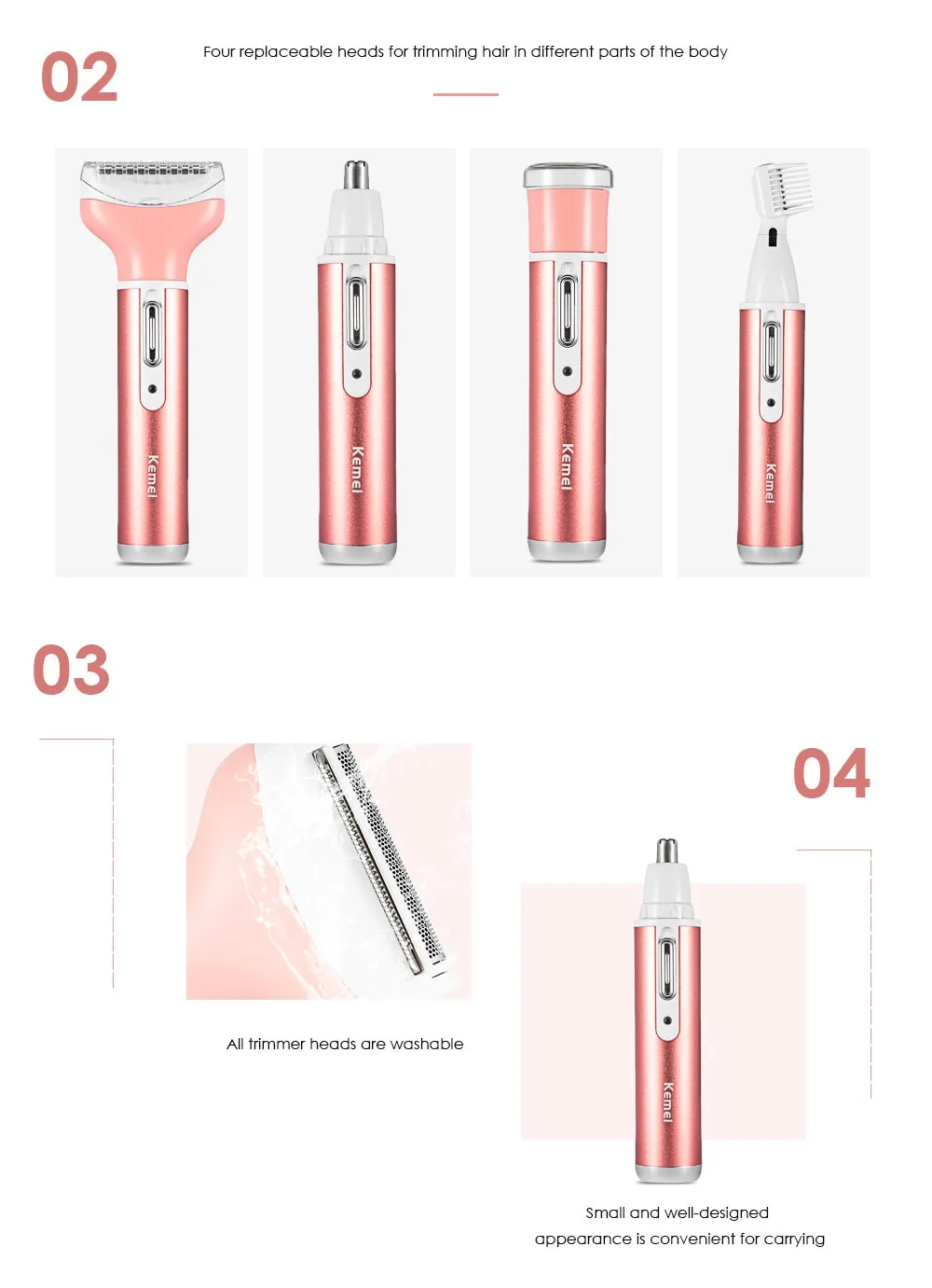 4 in 1 trimmer set can use for beads, eyebrows, hair and nose hair. It keeps your appearance tidy and clean every day.