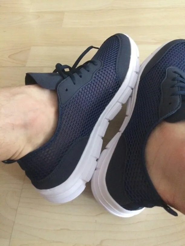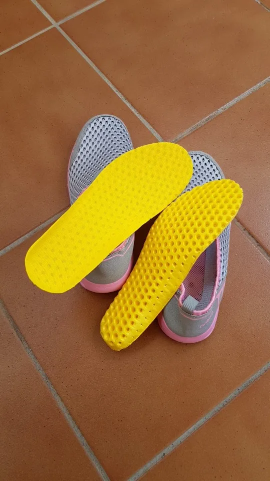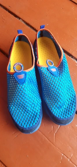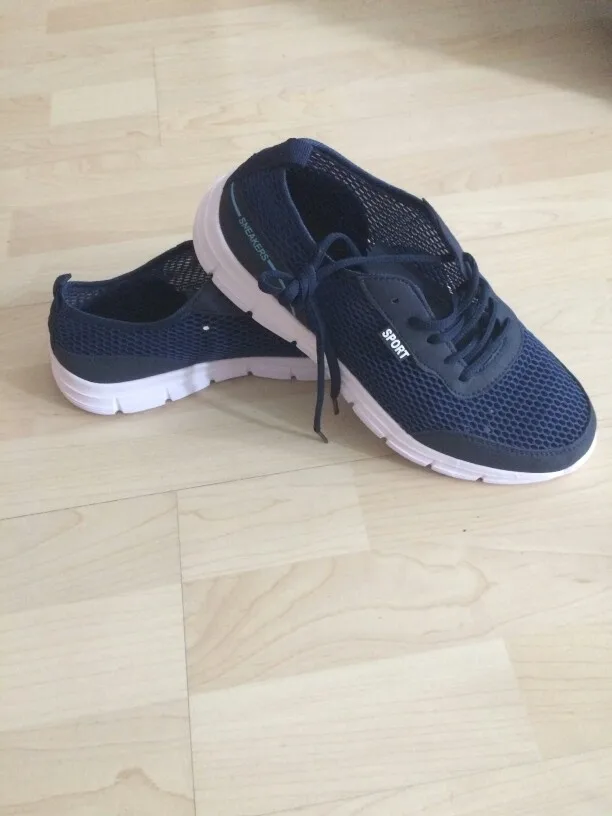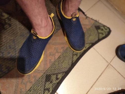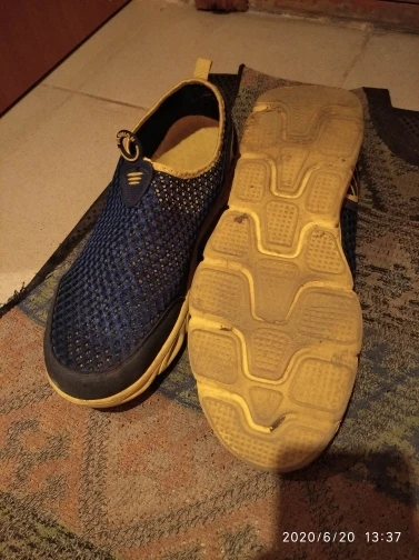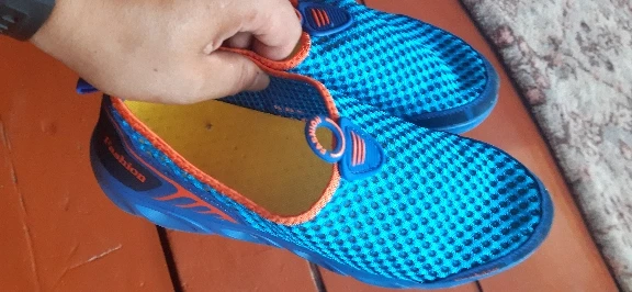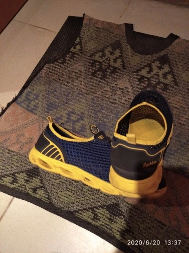 Everything came in excellent condition. Sneakers first of all took because of their The ideal color is yellow sole and blue top. Mesh on slippers two-layer, upper larger, lower smaller, size Holes in 4mm and 2,5mm mesh respectively. Colors bright, Saturated. In the sole of the side are made decorative cross holes because of them Sneakers during walking sometimes produce a Rubber Squeak, more often creak When very hot and heavy gait (my weight is 90 kg with a plus). My left foot size is 26,5 cm, right 27 cm. Selected 44 Slipper size Approached well, even there is free space so in the heat if Legs poured then there is no discomfort. I 've been in them in the heat two already Weeks, I'm happy with the purchase. Product and store recommend.