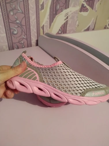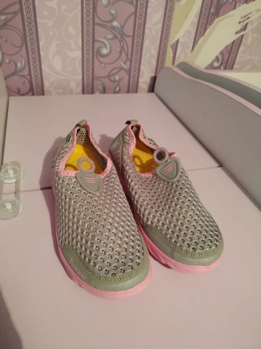 Khimar specific, smell as you used to buy "Chinese shoes" on the market. And so norms and light and comfortable, mesh made of fabric, the sole is soft, flexible, the size matches, ordered 9( 43 R, the length of my foot is 26,5 cm). So purely for a sample. I recommend the language does not turn to say) delivery fast weeks two.