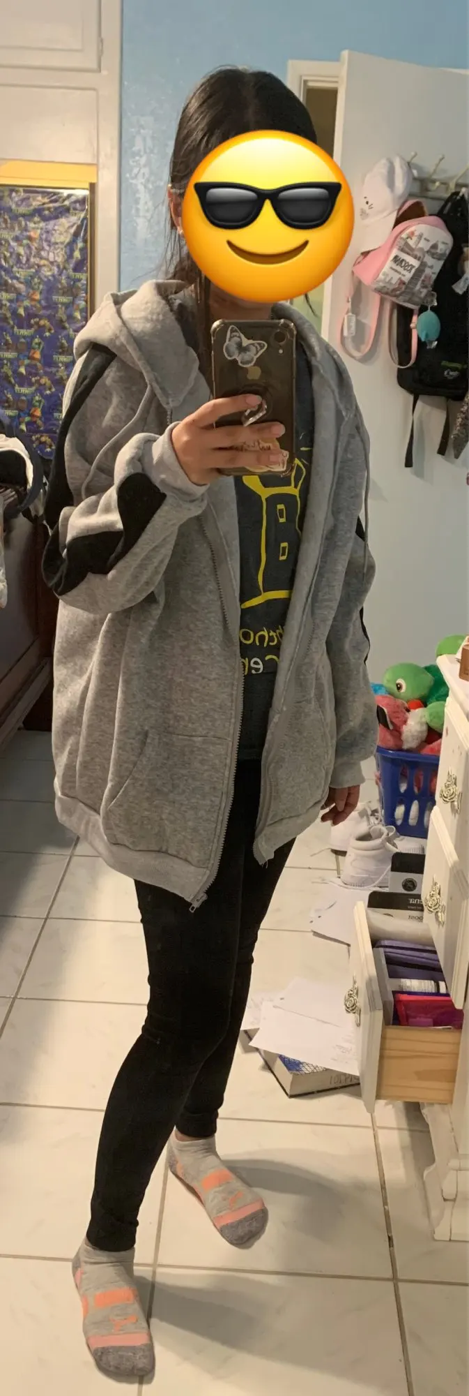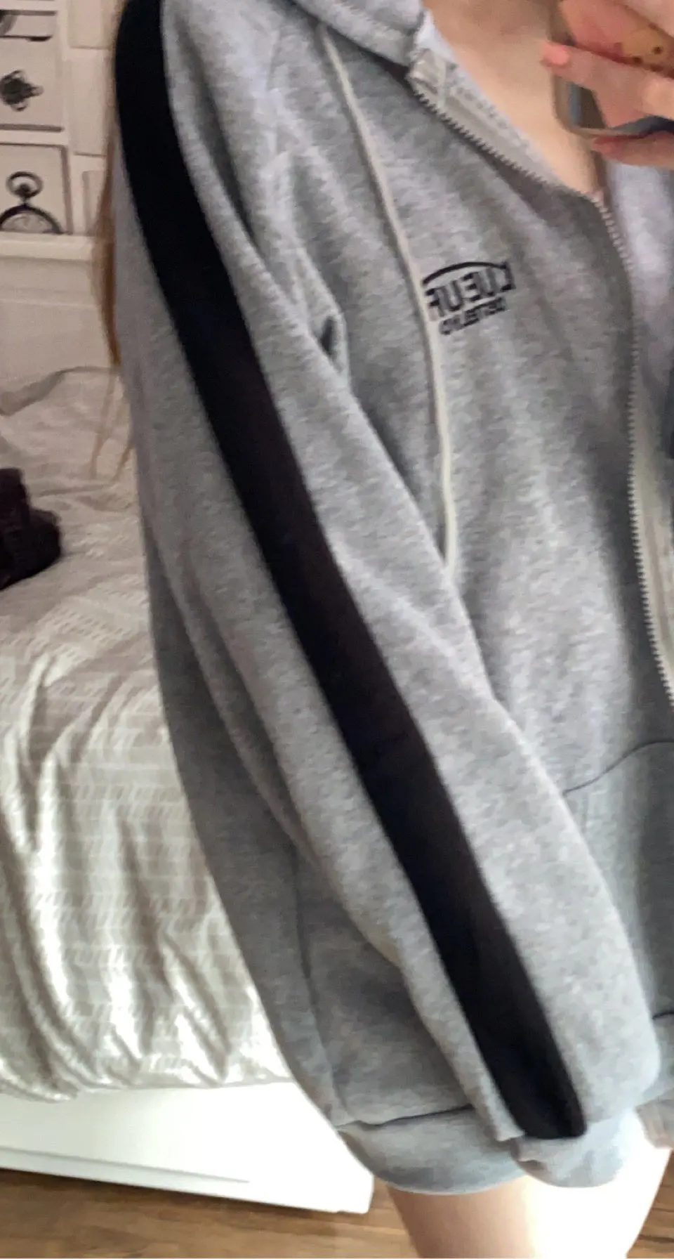 i usually wear a small but wanted it to be oversized so i ordered the xl and it’s p cute! took a couple weeks to ship