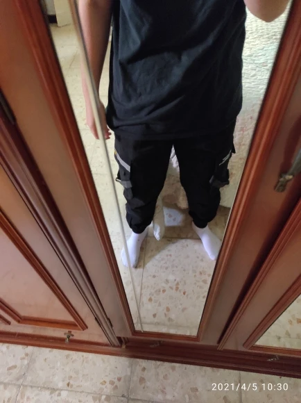 I'm 1,61cm tall. The trousers are good quality, the only bad thing is that the fabric stays all the hairs attached to it. Good communication with the store. It doesn't look much like the pants to the photo, really, but for the price you have it is very good. Thank you. I'll buy again.