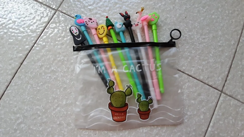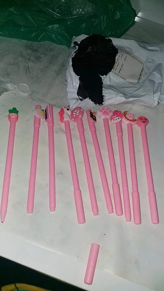 Pens all work and are super cute. Bag is perfect size to store them in. Thank you!