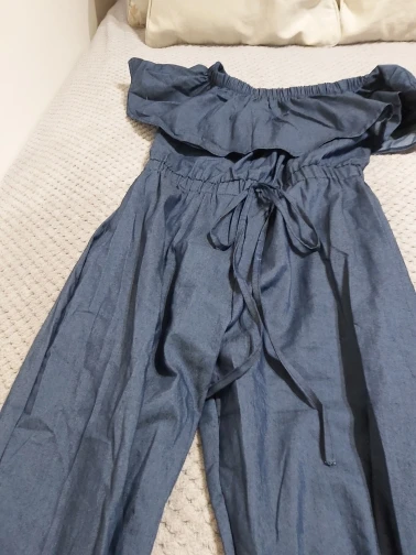 New Off Shoulder Bodycon Solid Colour Denim Wide Legs Jumpsuit for Women in 2022. Stylish and Sexy.