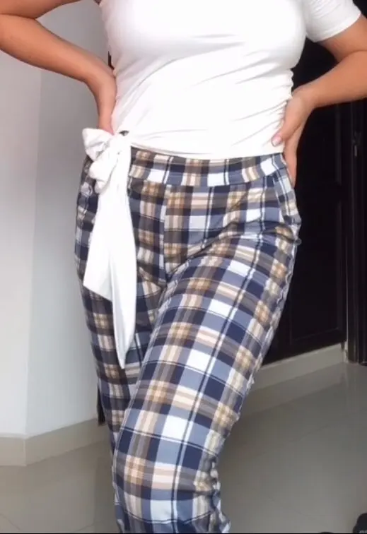 Oversize Plaid Wide Leg Pants, perfect casual outfit Size Waist(cm) Hips (cm) Pant Length(cm) Thigh Circumference(cm) Advised Weight(kg) S 56-80 100 91 52 Less Than 45 M 60-84 102 92 52 45-53 L 62-86 104 93 56 53-60 XL 68-92 108 96 60 60-67 XXL 70-94 109 97 62 67-75
