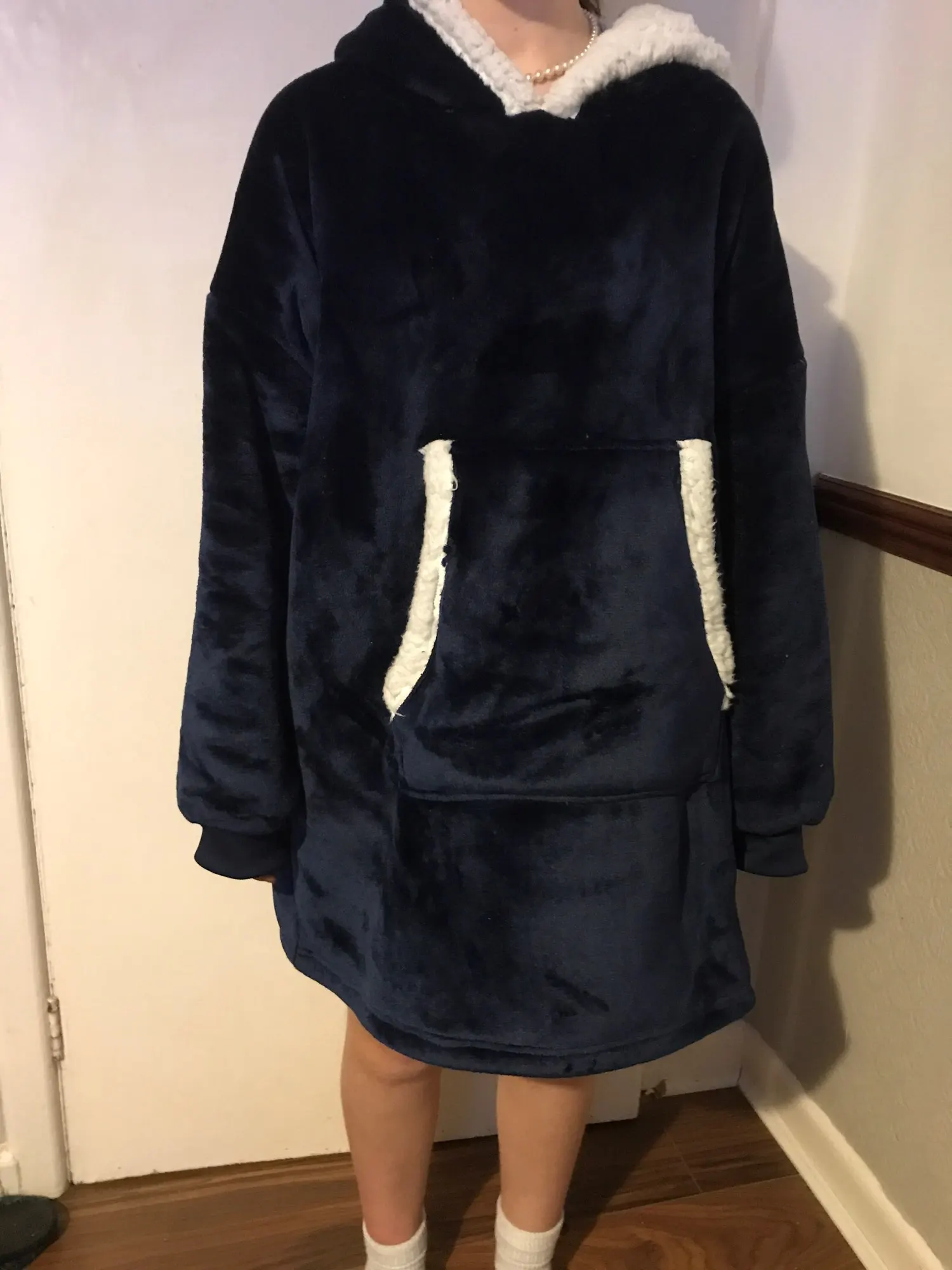 Pleased with the hoodie- not as big as expected but fine. - comes mid-thigh on 5ft5 inch height.