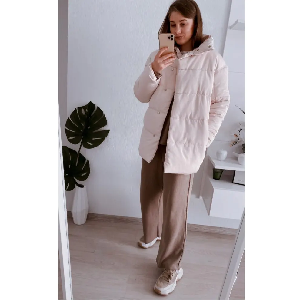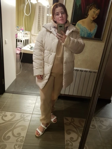A good down jacket for its money, stuffed normally, for my height 158 cm sleeves just, size m. Threads do not stick out, there is no smell. Of the minuses, the store sent more than 5 days. In the end, I went to 3 weeks. Down jacket is suitable for thin short as I))