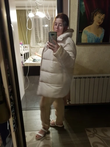 I was waiting for this down jacket, for my height 175 was quite short, but it's not scary. The quality of fire, the fabric is dense, water-repellent, the color is milky, pleasant. Stuffed very tightly, warm. For this price is just a find. More pics in my Instagram mihi_style