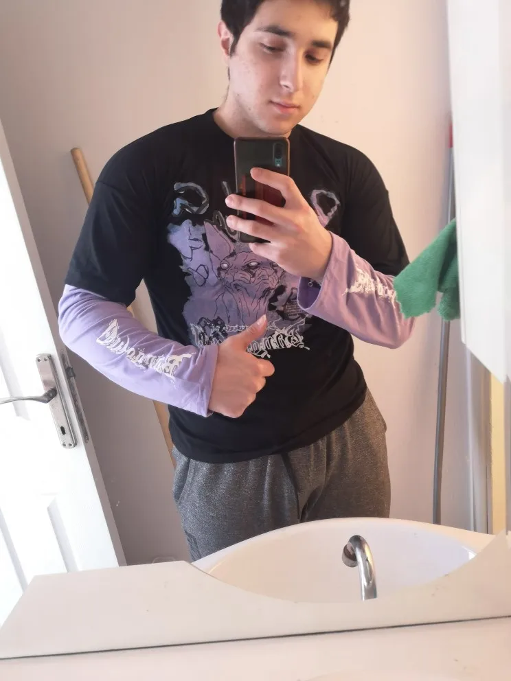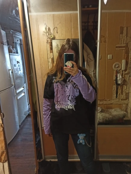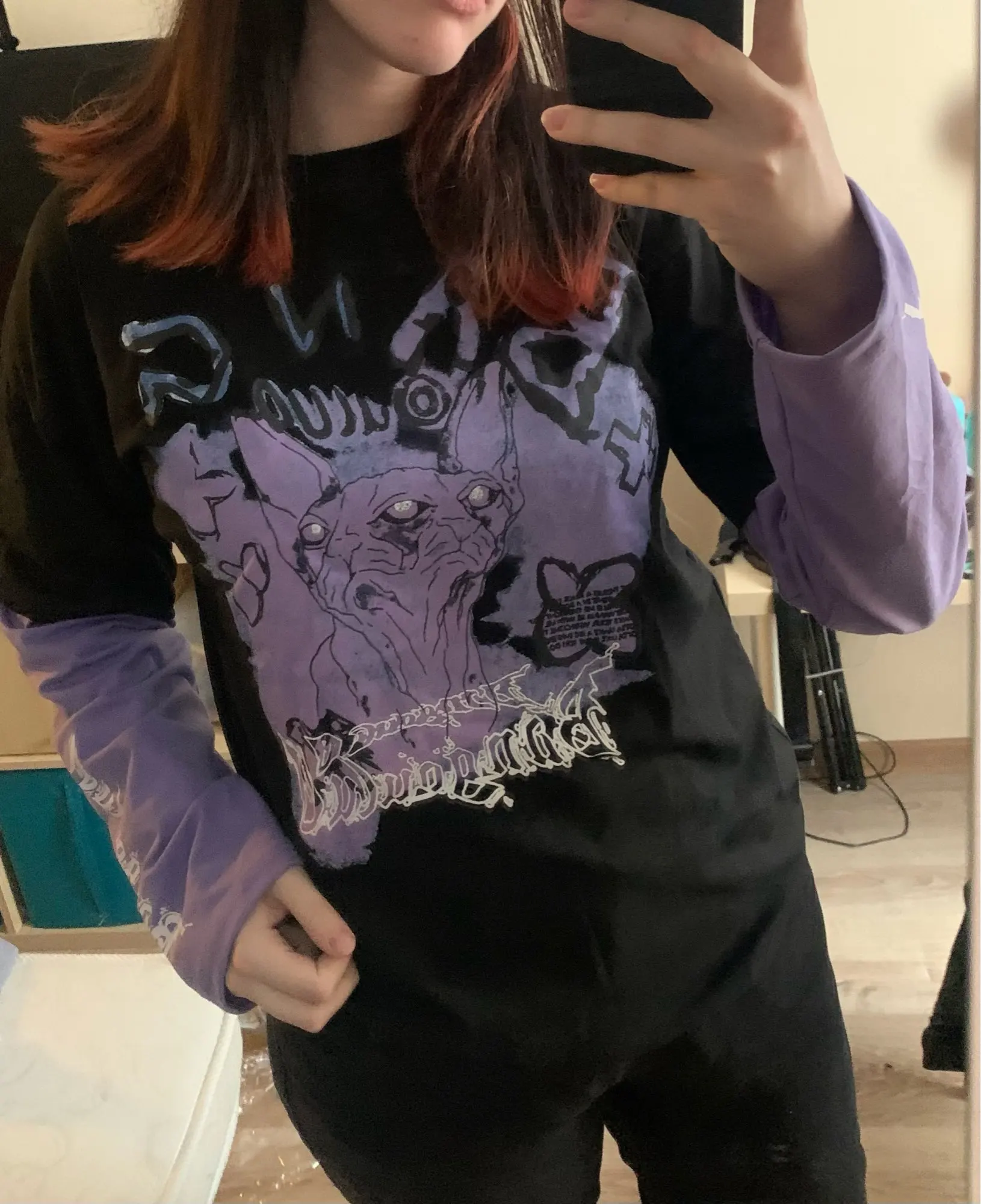 Oversized long-sleeved t-shirt, with two overlapping sleeves. Oversized Long-Sleeved Hip Hop T-Shirt