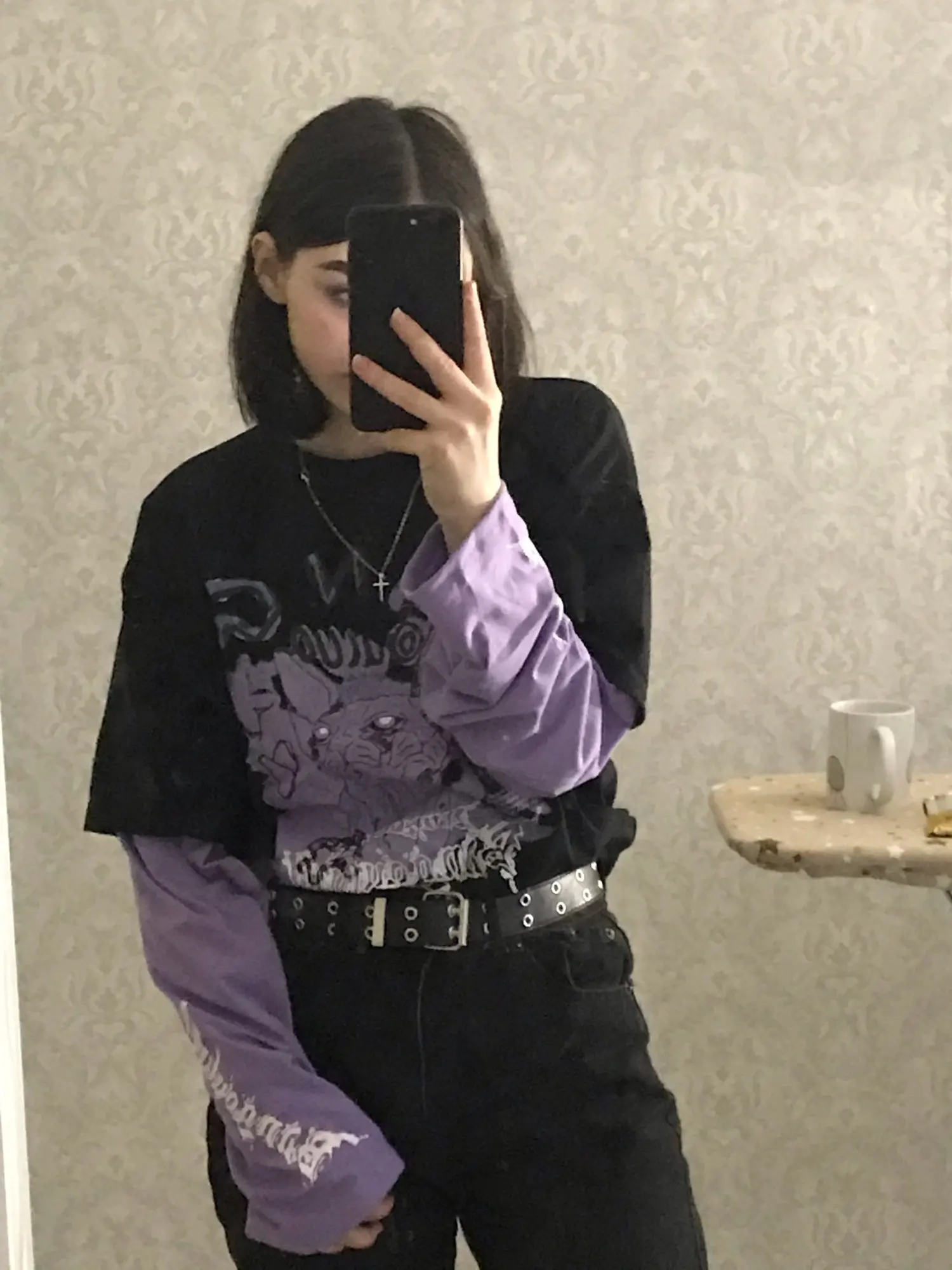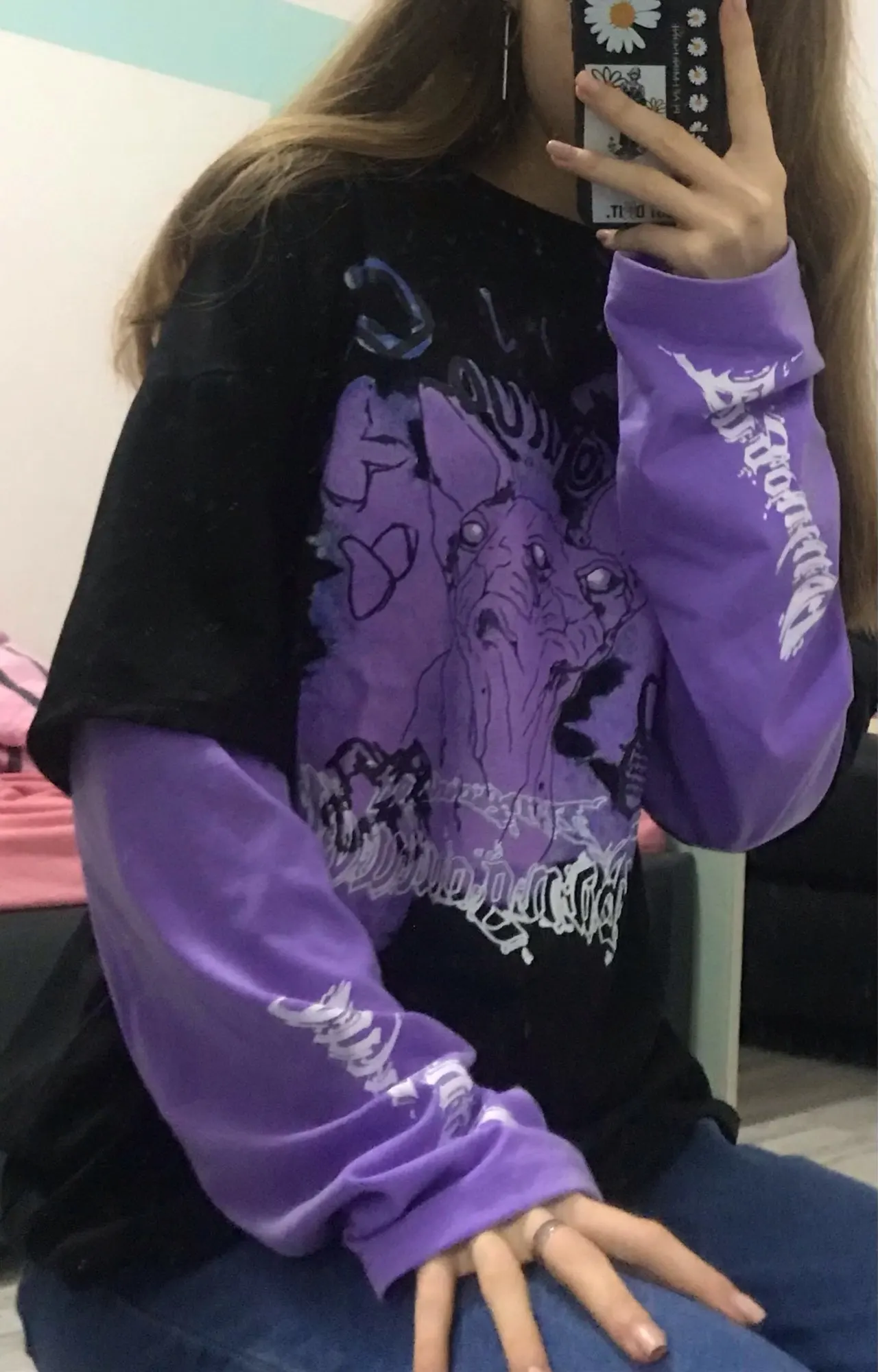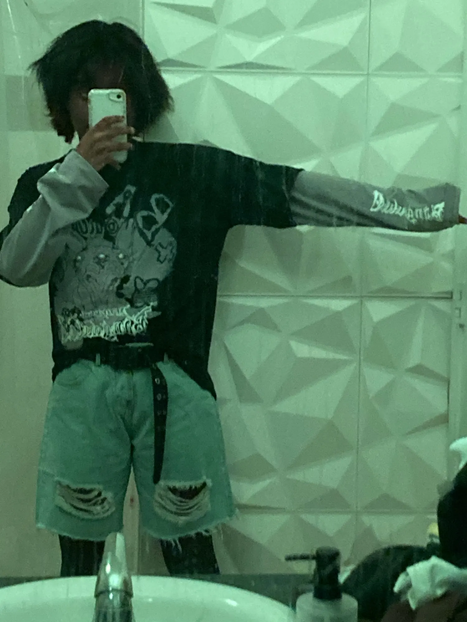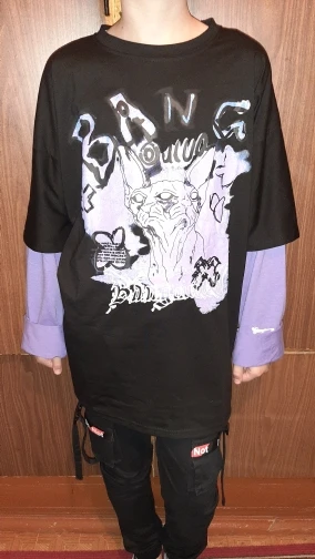 Oversized long-sleeved t-shirt, with two overlapping sleeves. Oversized Long-Sleeved Hip Hop T-Shirt