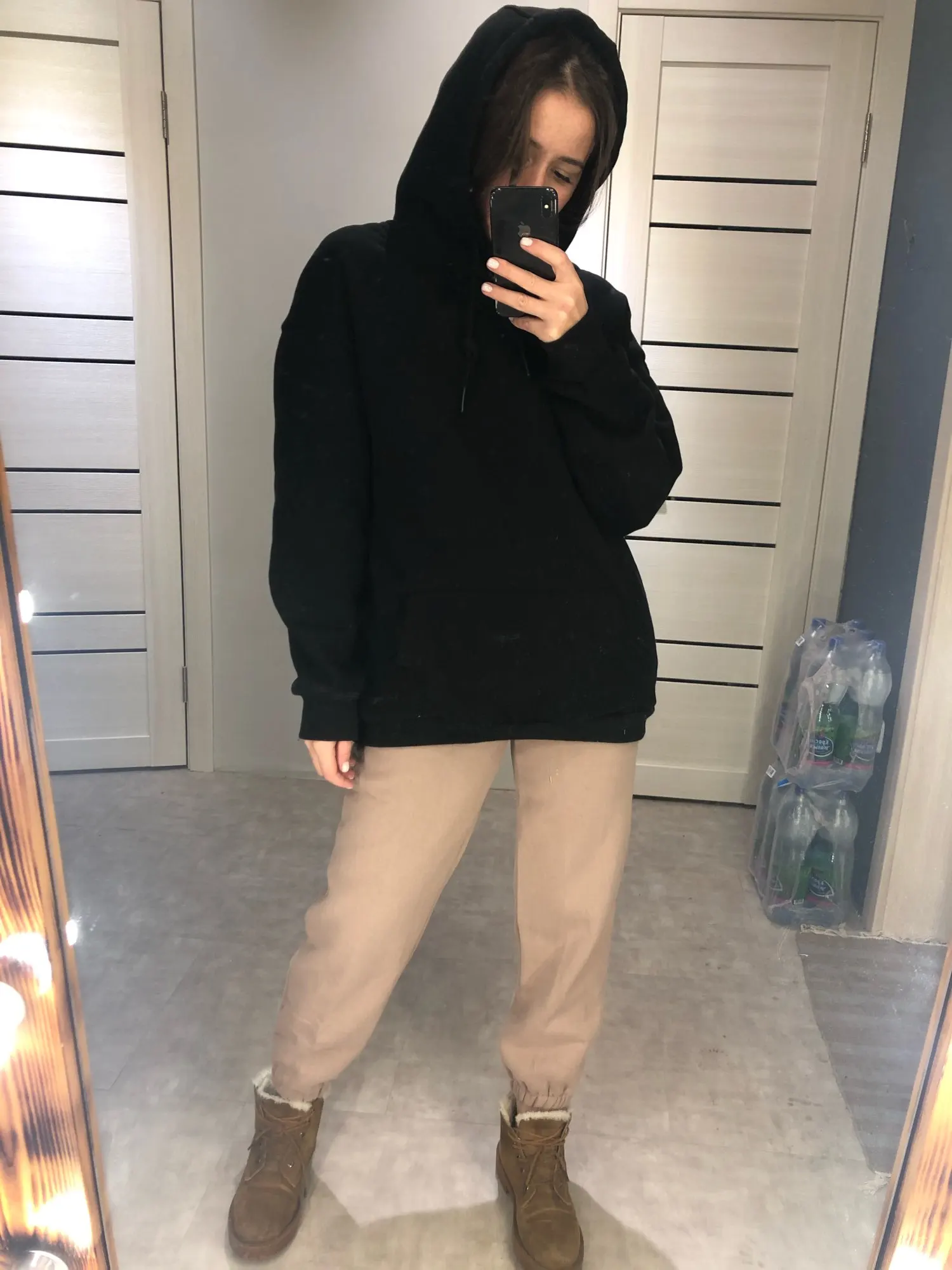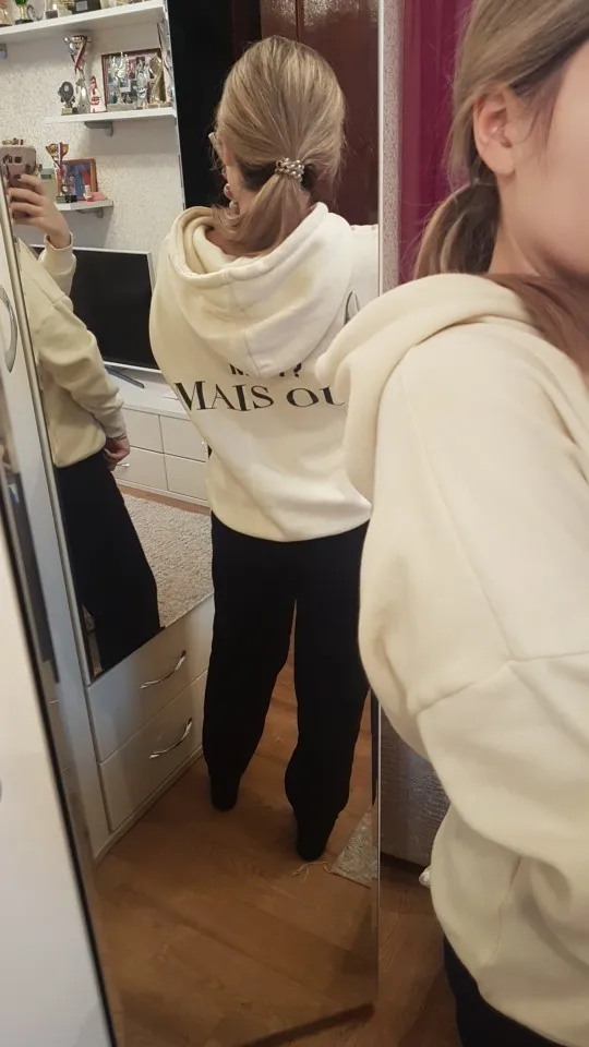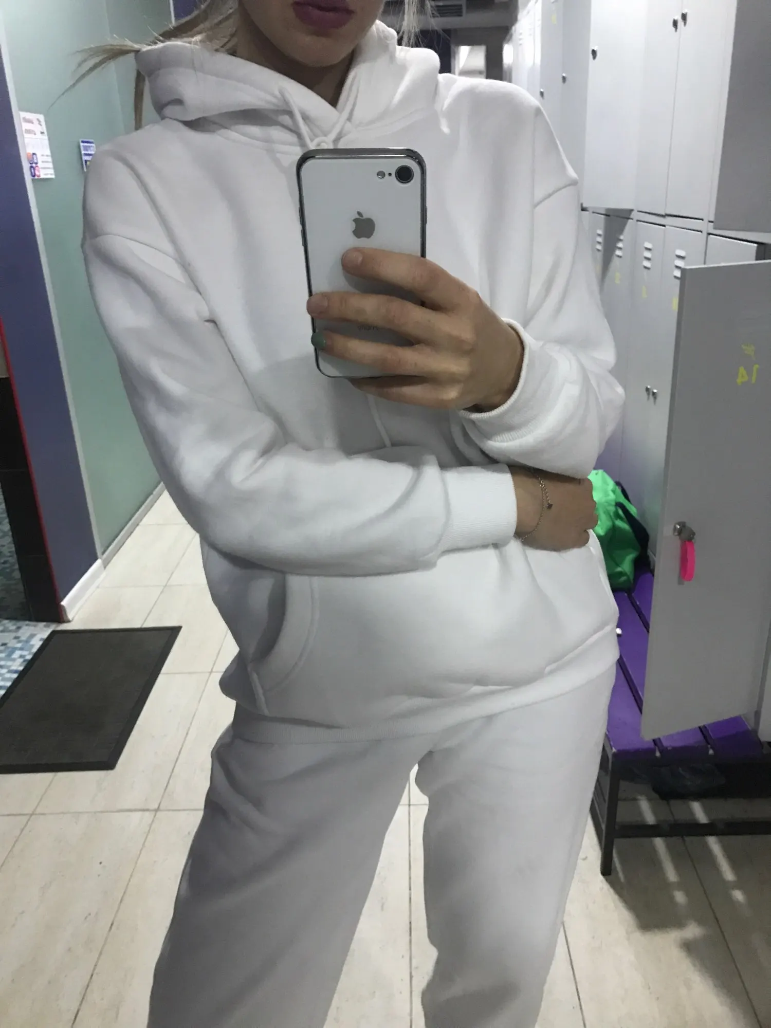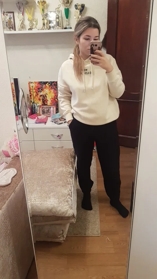 The order was 11.11, the parcel arrived at the 30.11 liaison office. The store umnichka sent the order in a couple of days, despite the whole purchase during the World sale. Quality gun! There is one drawback: See the photo, the threads are not removed on the elastic band. Lining-fleece, suit warm. Color as in the photo. The hood is big. The back of the hoodie is slightly longer. On my parameters 80-65-89 took the hoodie size S, pants size M (Took according to reviews), was afraid that there would be short. The photo shows that I have a good stock, the suit turned out to be an oversize. In general, I'm happy)) the seller put as a gift a cute desktop calendar)) very nice :) prosperity to your store!