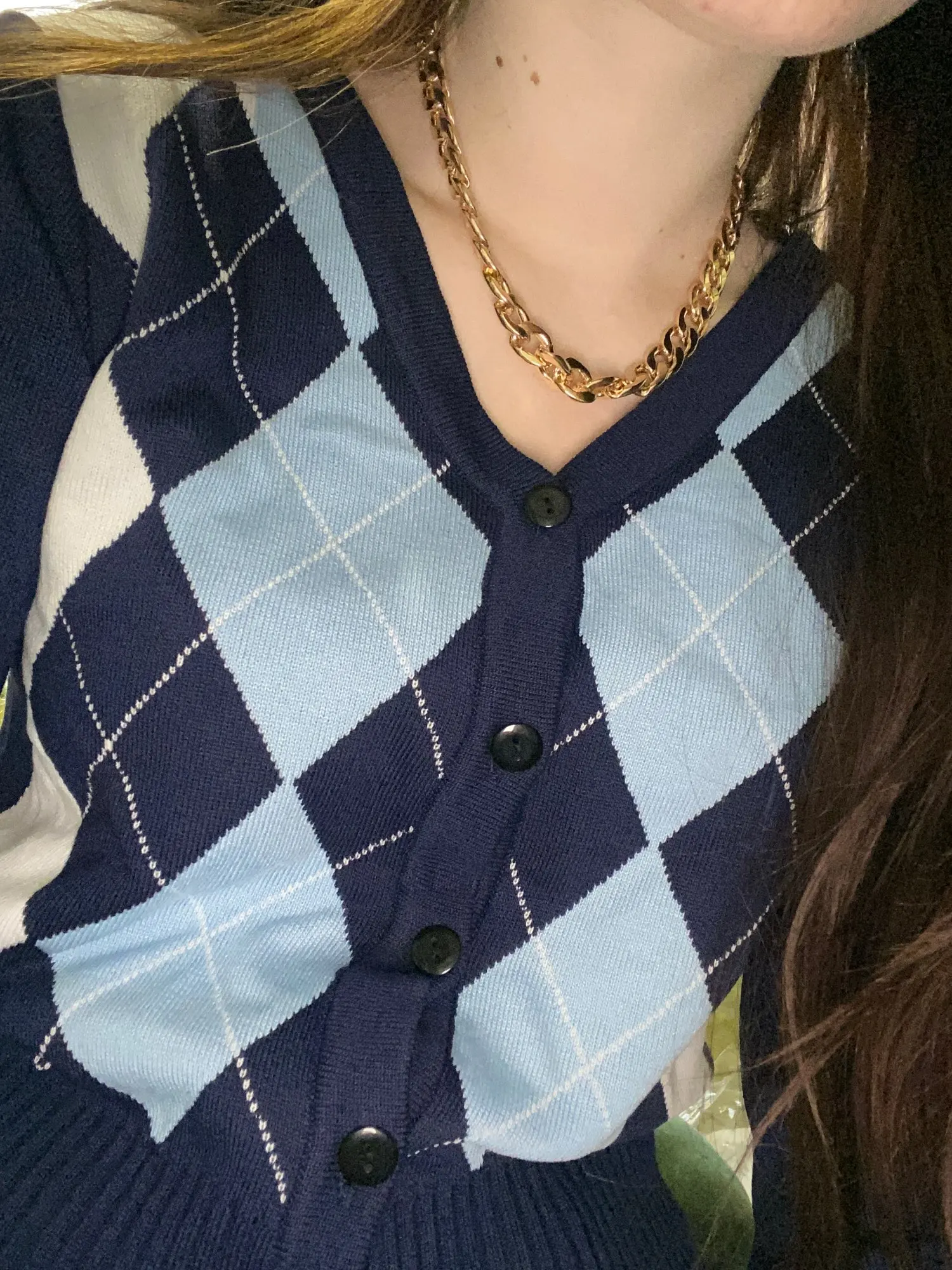Plaid V-Neck Sweater Autumn and Winter Seasons Knitted Sweaters for Women