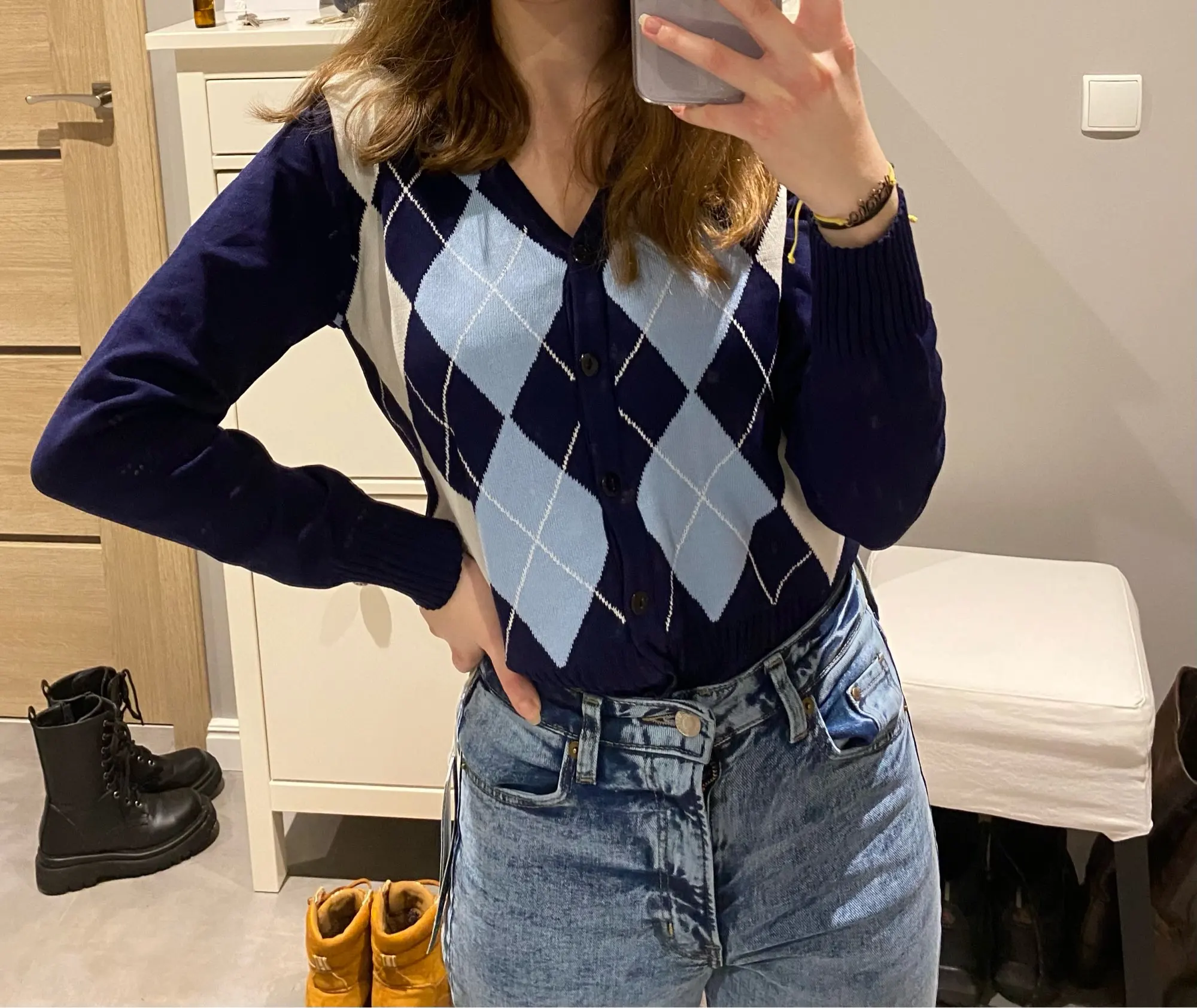 Plaid V-Neck Sweater Autumn and Winter Seasons Knitted Sweaters for Women