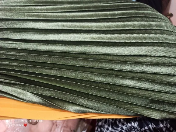 Pleated Velvet High Waist Midi Casual Loose  Skirt for women