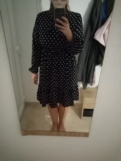 The dress is awsom, for this money perfekt. Usually wear EU40/42, and take L. Ordered 9/6, delivered 10/5, one month. Slive it's little smaller but not problem. I will order more dresses.