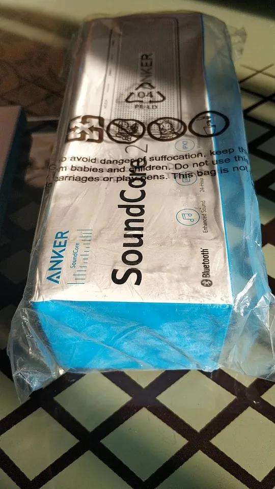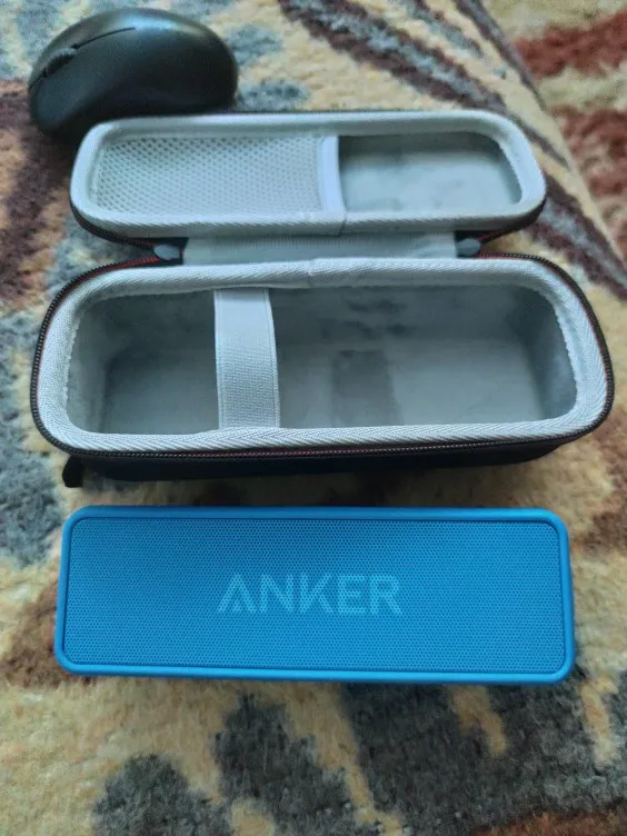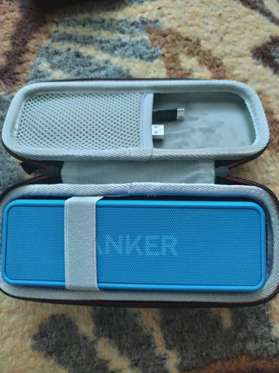 Anker SoundCore 2 Bluetooth speaker, Micro USB charging cable, welcome guide.