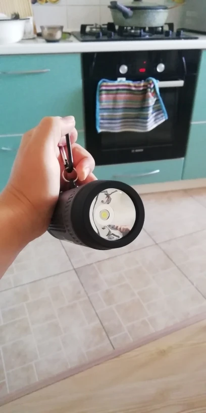 Column bomb!!!! I didn't expect to. Loud, with bass and clear sound. Ordered on May 28, brought by the Courier on June 3. Volzhsky, Volgograd Region The Lantern shines 3 different modes. Bright, bright and blinking. Easy to attach to the bike, keeps firmly. You can hang it, there is a carabiner. The box for it is available, came intact, not crumpled. In general, the column is super, I advise, I honestly waited for it straight small, less palm, and came excellent, in the photo you can see and did not count on such a sound. So take it, you will not regret it.