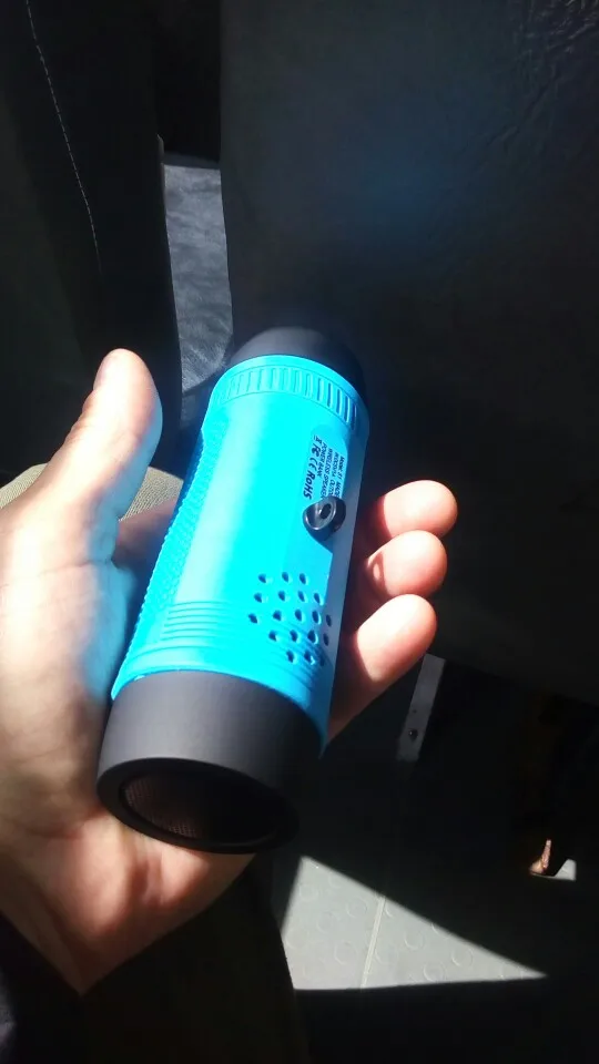 Powerful Bluetooth Speaker Bicycle FM Radio Outdoor Waterproof Portable Wireless Speaker Boombox+Power Bank+Flashlight+Bike Mount + Carabiner Main Features: 1. FM radio function 2. power bank function 3. led flashlight function (3 SOS light modes) 4. with micro sd/TF card slot 5. size: 15.5cm x 5cm x 5cm 6. bluetooth version: V5.0 7. battery compacity: 4000mAh 8. music play time: 8-10 hours 9. charging time: about 5 hours 10. item weight: 260g 11. Compatible with: iPhones, Android phones like Samsung,ZTE and so on,PC Standard Package: 1 x bluetooth speaker in retail gift box 1 x Bike mount bracket 1 x Carabiner 1 x AUX audio cable 1 x USB charge cable 1 x English manual
