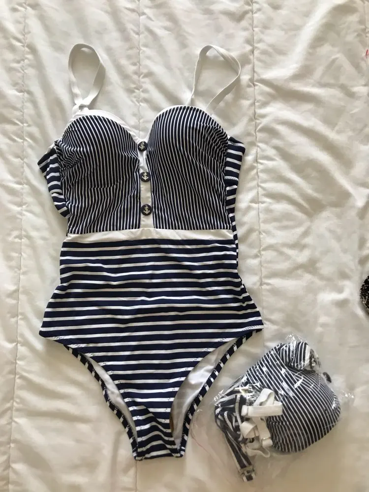 Pretty Striped One Piece Push Up Swimsuit