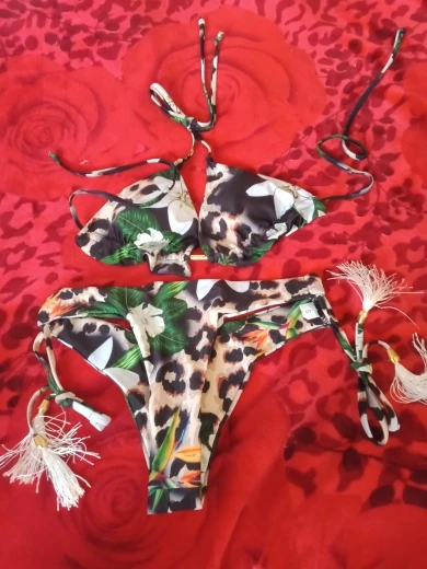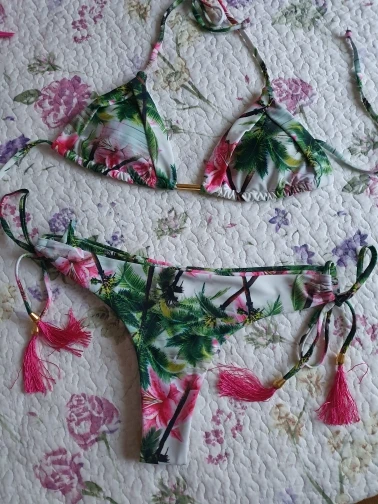 Well, I have to say the bikini is a blast! For the price you have it is very well sewn, it comes with the typical protective plastic, it smells a little. But as soon as you get it out of the bag it goes away. Logically there are girls that fit perfect, but to be 49, it's not bad, I think maybe I should have ordered an S instead of an M, but my culete will thank me for this size. I have No complaint, fast shipping!
