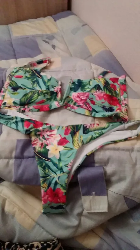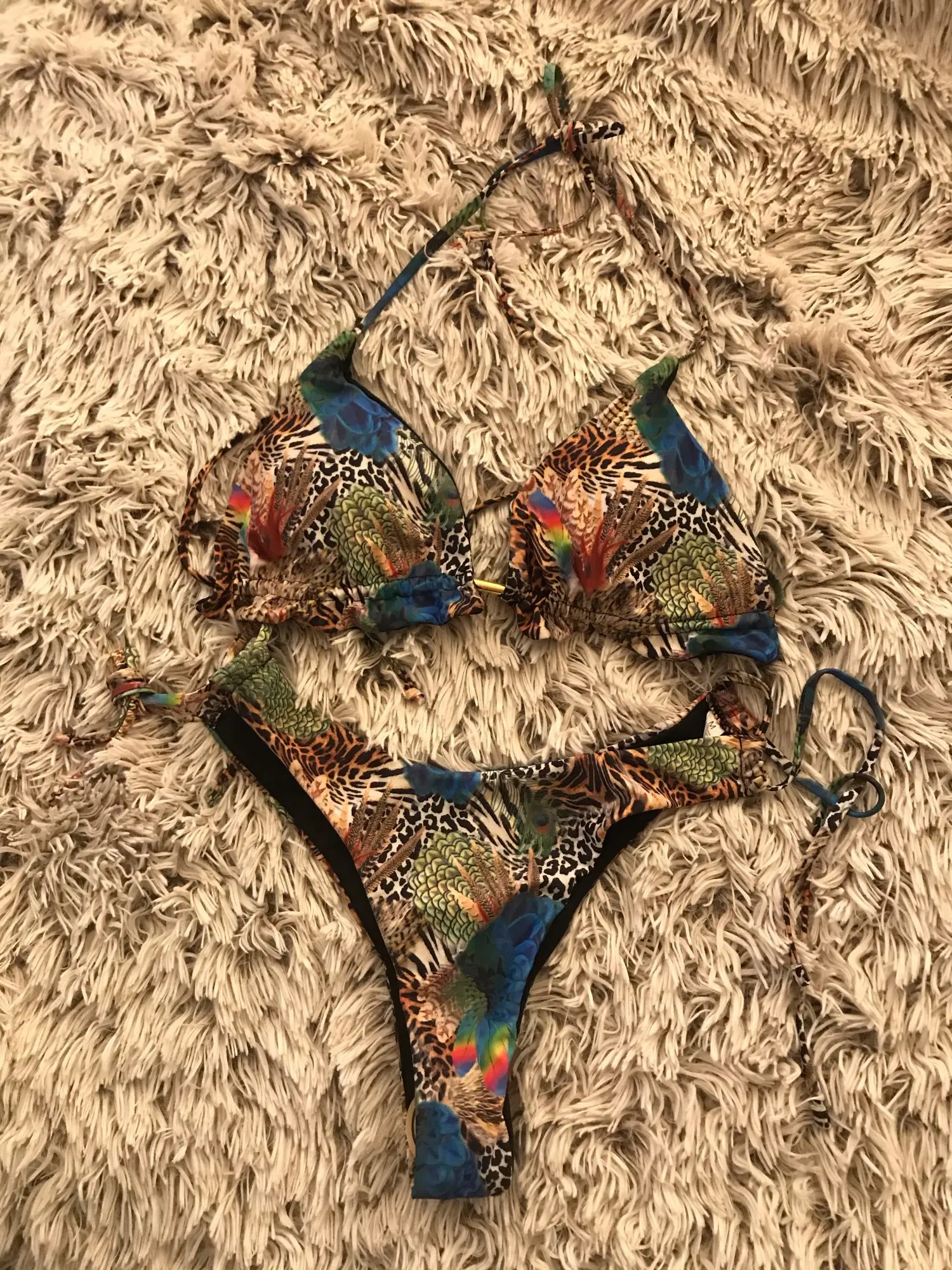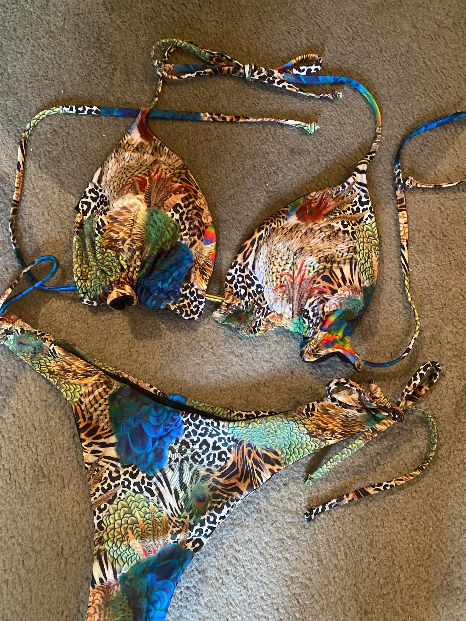 New Exquisite Bathing Suit For Women in 2021. Halter Neck Push up Padded Thong Bikini. Tropical Designs Super Comfy Bikini.