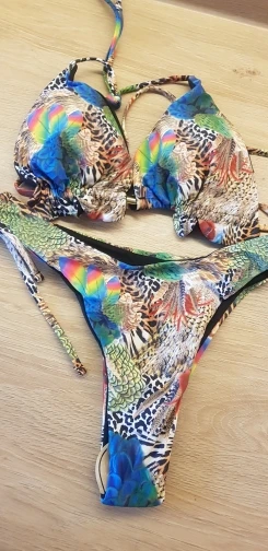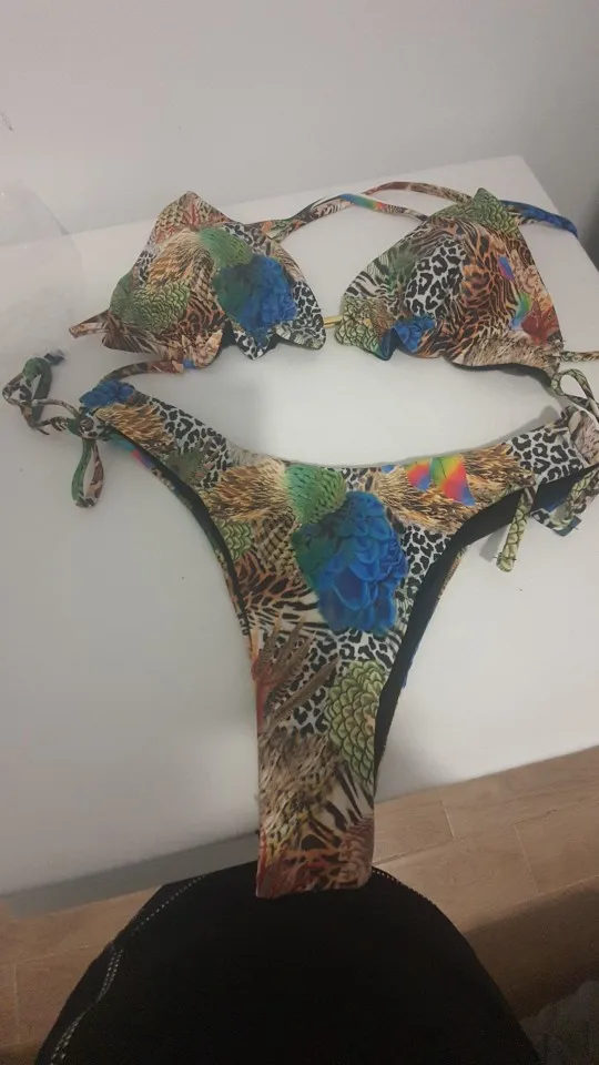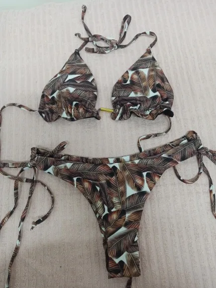 New Exquisite Bathing Suit For Women in 2021. Halter Neck Push up Padded Thong Bikini. Tropical Designs Super Comfy Bikini.