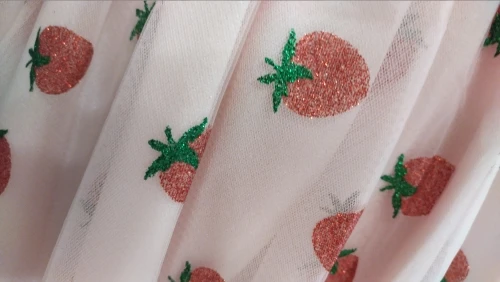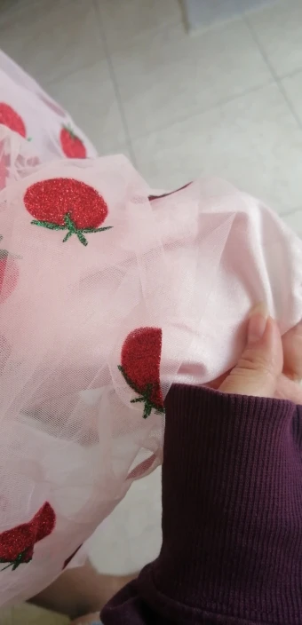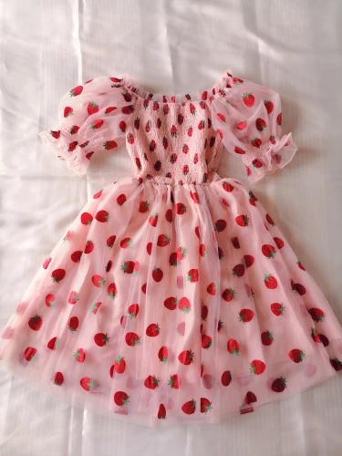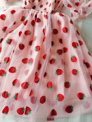 The dress is beautiful, well made good quality, not itchy, keep in mind that the strawberries are made of frost, it took more than a month to arrive but all well.