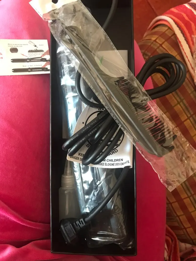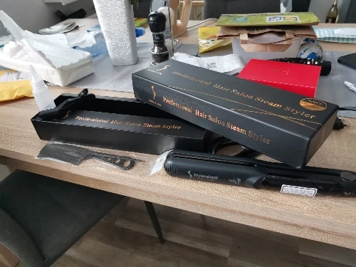 Instructions: This product is a professional hair straightener. Rapid build shiny straight hair modelling for you, heating up to 100° just needs about 20 seconds.it has uniform heating technology for straightener hair Features: · 2 steam settings vapour-blast hair with unbelievable shine and smoothness · 6 temperature-lock settings provide the perfect finish for your hair type · Heats to Keratin-ideal 450 F/230 C max temperature swift · PTC heater for instant heat-up, safety · Floating plates for better hair straightening · Size of heating plates: 112*32 mm · Length of the flat iron: 30cm · Automatic temperature lock for consistent heat throughout use · Vented Tourmaline-Ceramic plates infuse hair with therapeutic argan Oil · Stylish and functional 9’ burn-resistant textile cord · 360 degrees swivel cord prevents tangling and keeps you on the move Function: 1. Salon-Quality Straightening with Steam Function Enjoy a polished salon finish at home with this professional-quality flat iron. Designed with 1-inch ceramic plates, the iron achieves high, consistent heat that reduces frizz and damage as it straightens your hair. Applying steam technology, with argan oil or water put into the tank on the flat iron, the hair can be protected well during hair straightening. 2. Tourmaline Ceramic Technology for Smooth Results High-grade tourmaline ceramic plates for a snag-free glide and more even heating than traditional flat iron straighteners. The floating plate design ensures your hair stays in contact with the heat, resulting in faster styling and smooth, healthy hair. A salon-length swivel cord offers greater styling flexibility. 3. Convenient LED Temperature Display Aids Styling Monitor the flat iron's temperature on the easy-to-read LED display. 4. Adjustable Heat Straighten your hair with heat up to 450 degrees Fahrenheit. Simple two-button controls allow you to increase and decrease the heat to your desired level. Temperature lock mode prevents overheating and keeps the setting secure as you style. For very fine, fragile, damaged hair, use 300-375°F. For normal, easy to straighten hair, use 375-410°F. And for thick, difficult to straighten hair, use 410-450 °F. 5. Professional MCH heater, fast Heat Up With a quick heat-up, you'll be ready to style in no time. A hinge lock allows you to keep the iron in a locked position for easier storage. How to use: 1. Plug the device. 2. Press the “POWER” button to switch on the device. 3. Temperature control: press the “+” button to increase the plate heating level, every single press the temp climbs one level. Press the “-” button to decrease the plate heating level, every single press the temp goes down one level. 4. Again press the “POWER” button to switch off the device. 5. Automatically safety shut-off after one hour without any operations, then the blue POWER status light is on. 6. The heating indicating light: when plugging the device, the LED flashes from level-1 to level-6. The LED light stops flashing when certain heating intensity is chosen. 7. The steam control button is at the bottom side of the device, you can use this button to adjust the dose of steam spraying. Tips: 1. Please hold the device rightly, do not touch the heating plates when using for your safety concern. 2. Please fill the water chamber with pure water and switch steam spraying button on, then fold up and down the plates for 5--6 times then steam will start spraying. 3. Put a pinch of hair between the two plates, press the two plates to clench, then gently and slowly to straighten or curve your hair. 4. Please remember to switch off and unplug the device. Let the heating plates cool down before putting it away. Attention: 1.Do does not touch the heating plates directly during using 2.Do does not clean this device with water. 3.Flammable materials are forbidden to contact the hot plates when using. 4.Let the device’ plates cool down before putting it away. 5.Children are forbidden to use this device. About plug: This machine has a US Plug. Europen Plug, UK (British) Plug If you need Australia Plug, we will send you an extra adapter. ​