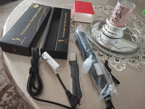 Instructions: This product is a professional hair straightener. Rapid build shiny straight hair modelling for you, heating up to 100° just needs about 20 seconds.it has uniform heating technology for straightener hair Features: · 2 steam settings vapour-blast hair with unbelievable shine and smoothness · 6 temperature-lock settings provide the perfect finish for your hair type · Heats to Keratin-ideal 450 F/230 C max temperature swift · PTC heater for instant heat-up, safety · Floating plates for better hair straightening · Size of heating plates: 112*32 mm · Length of the flat iron: 30cm · Automatic temperature lock for consistent heat throughout use · Vented Tourmaline-Ceramic plates infuse hair with therapeutic argan Oil · Stylish and functional 9’ burn-resistant textile cord · 360 degrees swivel cord prevents tangling and keeps you on the move Function: 1. Salon-Quality Straightening with Steam Function Enjoy a polished salon finish at home with this professional-quality flat iron. Designed with 1-inch ceramic plates, the iron achieves high, consistent heat that reduces frizz and damage as it straightens your hair. Applying steam technology, with argan oil or water put into the tank on the flat iron, the hair can be protected well during hair straightening. 2. Tourmaline Ceramic Technology for Smooth Results High-grade tourmaline ceramic plates for a snag-free glide and more even heating than traditional flat iron straighteners. The floating plate design ensures your hair stays in contact with the heat, resulting in faster styling and smooth, healthy hair. A salon-length swivel cord offers greater styling flexibility. 3. Convenient LED Temperature Display Aids Styling Monitor the flat iron's temperature on the easy-to-read LED display. 4. Adjustable Heat Straighten your hair with heat up to 450 degrees Fahrenheit. Simple two-button controls allow you to increase and decrease the heat to your desired level. Temperature lock mode prevents overheating and keeps the setting secure as you style. For very fine, fragile, damaged hair, use 300-375°F. For normal, easy to straighten hair, use 375-410°F. And for thick, difficult to straighten hair, use 410-450 °F. 5. Professional MCH heater, fast Heat Up With a quick heat-up, you'll be ready to style in no time. A hinge lock allows you to keep the iron in a locked position for easier storage. How to use: 1. Plug the device. 2. Press the “POWER” button to switch on the device. 3. Temperature control: press the “+” button to increase the plate heating level, every single press the temp climbs one level. Press the “-” button to decrease the plate heating level, every single press the temp goes down one level. 4. Again press the “POWER” button to switch off the device. 5. Automatically safety shut-off after one hour without any operations, then the blue POWER status light is on. 6. The heating indicating light: when plugging the device, the LED flashes from level-1 to level-6. The LED light stops flashing when certain heating intensity is chosen. 7. The steam control button is at the bottom side of the device, you can use this button to adjust the dose of steam spraying. Tips: 1. Please hold the device rightly, do not touch the heating plates when using for your safety concern. 2. Please fill the water chamber with pure water and switch steam spraying button on, then fold up and down the plates for 5--6 times then steam will start spraying. 3. Put a pinch of hair between the two plates, press the two plates to clench, then gently and slowly to straighten or curve your hair. 4. Please remember to switch off and unplug the device. Let the heating plates cool down before putting it away. Attention: 1.Do does not touch the heating plates directly during using 2.Do does not clean this device with water. 3.Flammable materials are forbidden to contact the hot plates when using. 4.Let the device’ plates cool down before putting it away. 5.Children are forbidden to use this device. About plug: This machine has a US Plug. Europen Plug, UK (British) Plug If you need Australia Plug, we will send you an extra adapter. ​