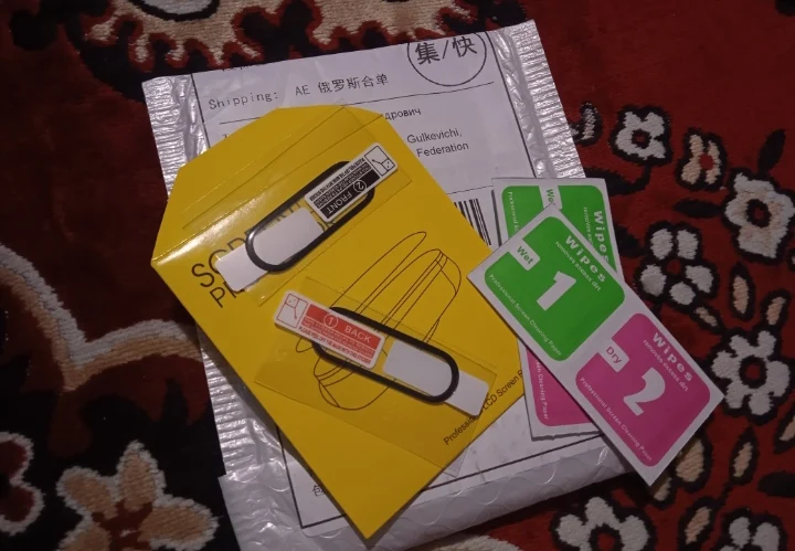 The order came very quickly, in 10 days to Moscow. Packed normally, the packing is not damaged and not crumpled. (On Mi Band 5) film pasted no special problems, the only only one layer did not immediately peel off, I had to pull up a needle to separate the layers, but for me it's not scary. Pasted perfectly, black faces do not interfere, the color of the display has not changed (no darkening due to the film), well, and sat on the bracelet perfectly, I am very pleased with the order. I can exactly advise everyone ^_^