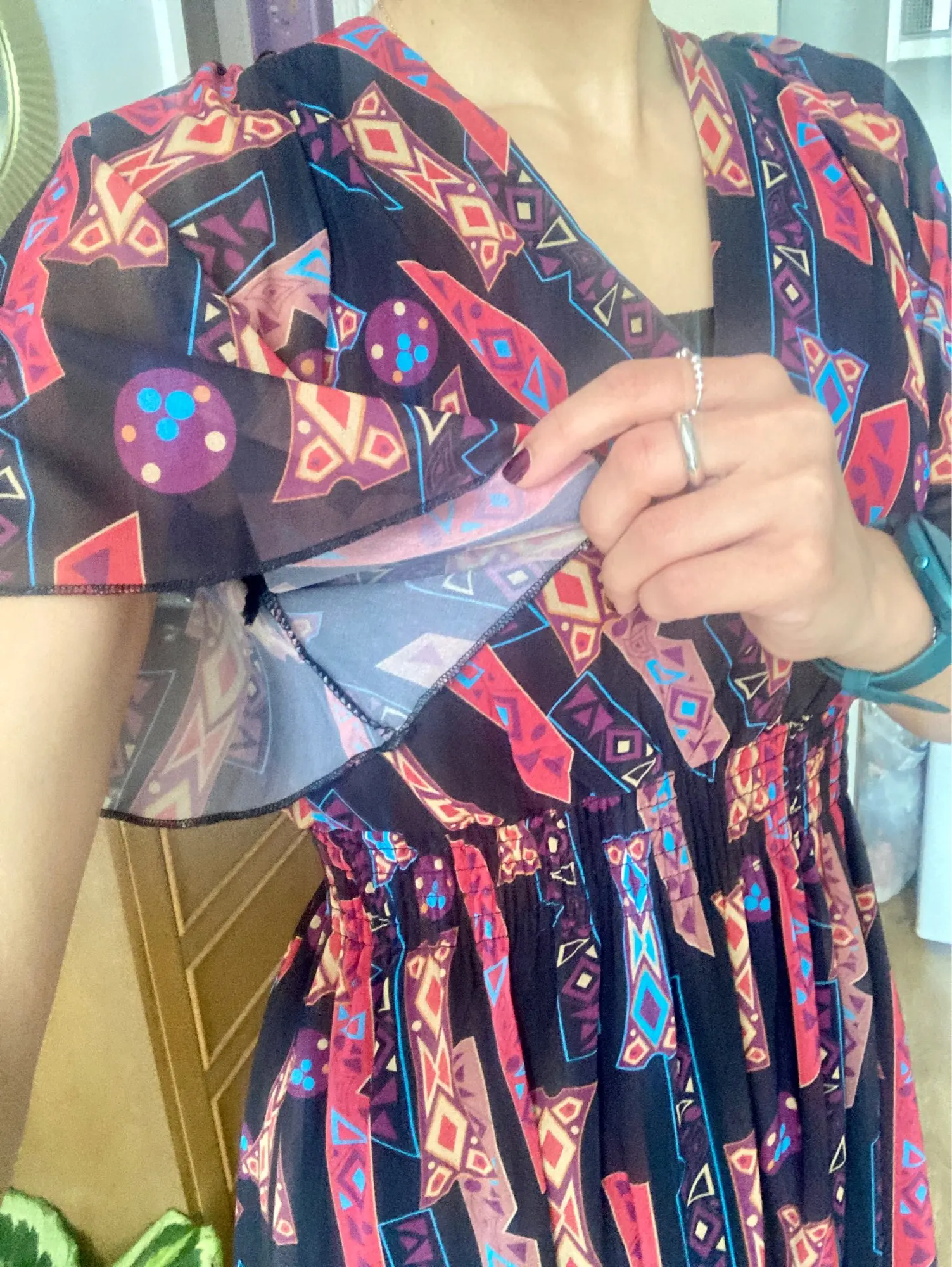 Ruffled V Neck Short-sleeved Chiffon Dress