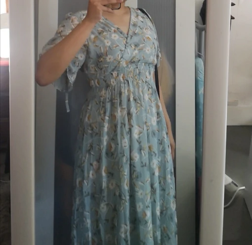 Fast delivery, excellent quality. Height 168 og89 ot71 ob99 shoulders 41 took the size of S, usually I take on SM L, this time I wanted the dress not to be in the floor and did not hang,
