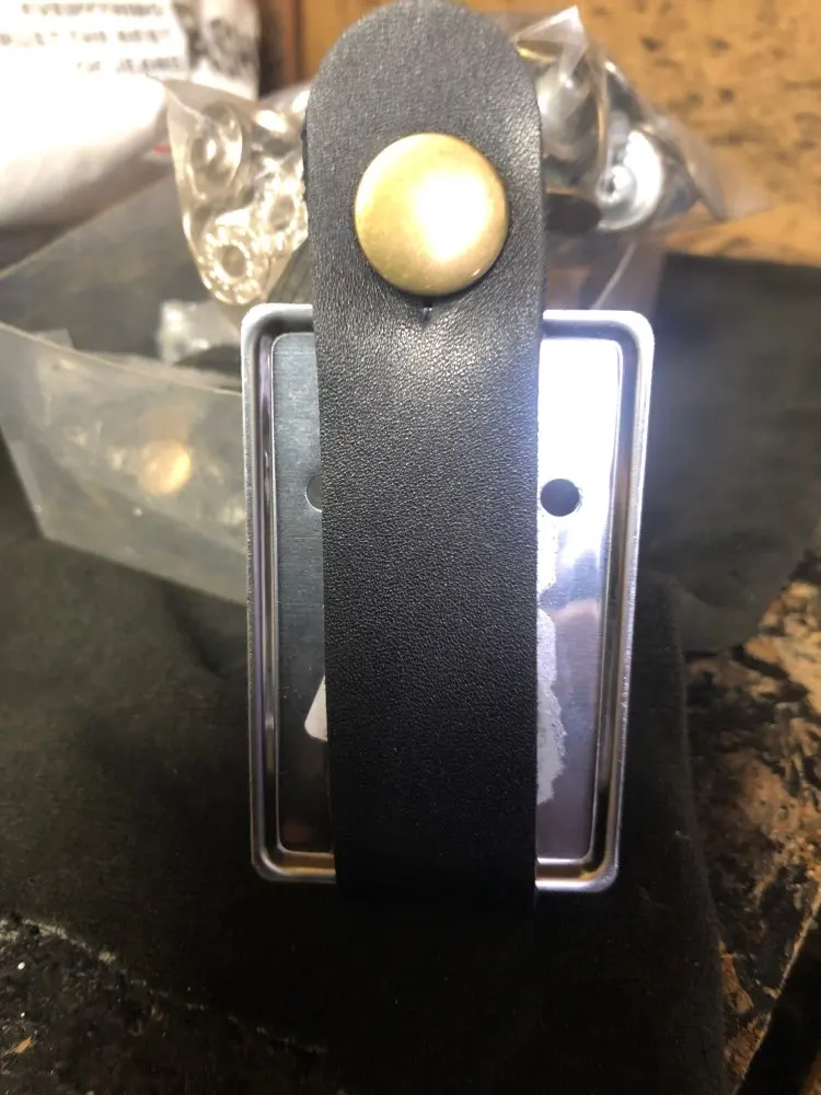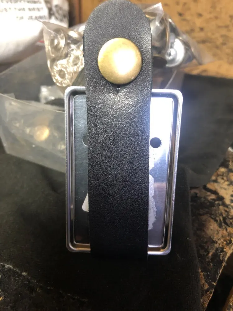 Description Style:Pure Color Head Material:PU Leather Main Material:Leather Color:Black Features: - Strong and durable. - Easy to use, classic and beautiful. - A useful guitar strap tool, without tieing a rope on the guitar neck. - Made of strong leather, hold your guitar and bass safely. Package includes 1 x Guitar Strap Holder