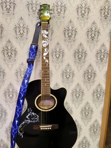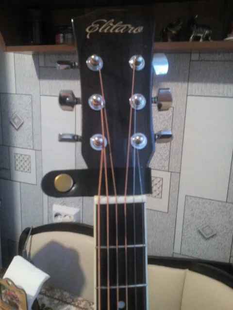 Description Style:Pure Color Head Material:PU Leather Main Material:Leather Color:Black Features: - Strong and durable. - Easy to use, classic and beautiful. - A useful guitar strap tool, without tieing a rope on the guitar neck. - Made of strong leather, hold your guitar and bass safely. Package includes 1 x Guitar Strap Holder