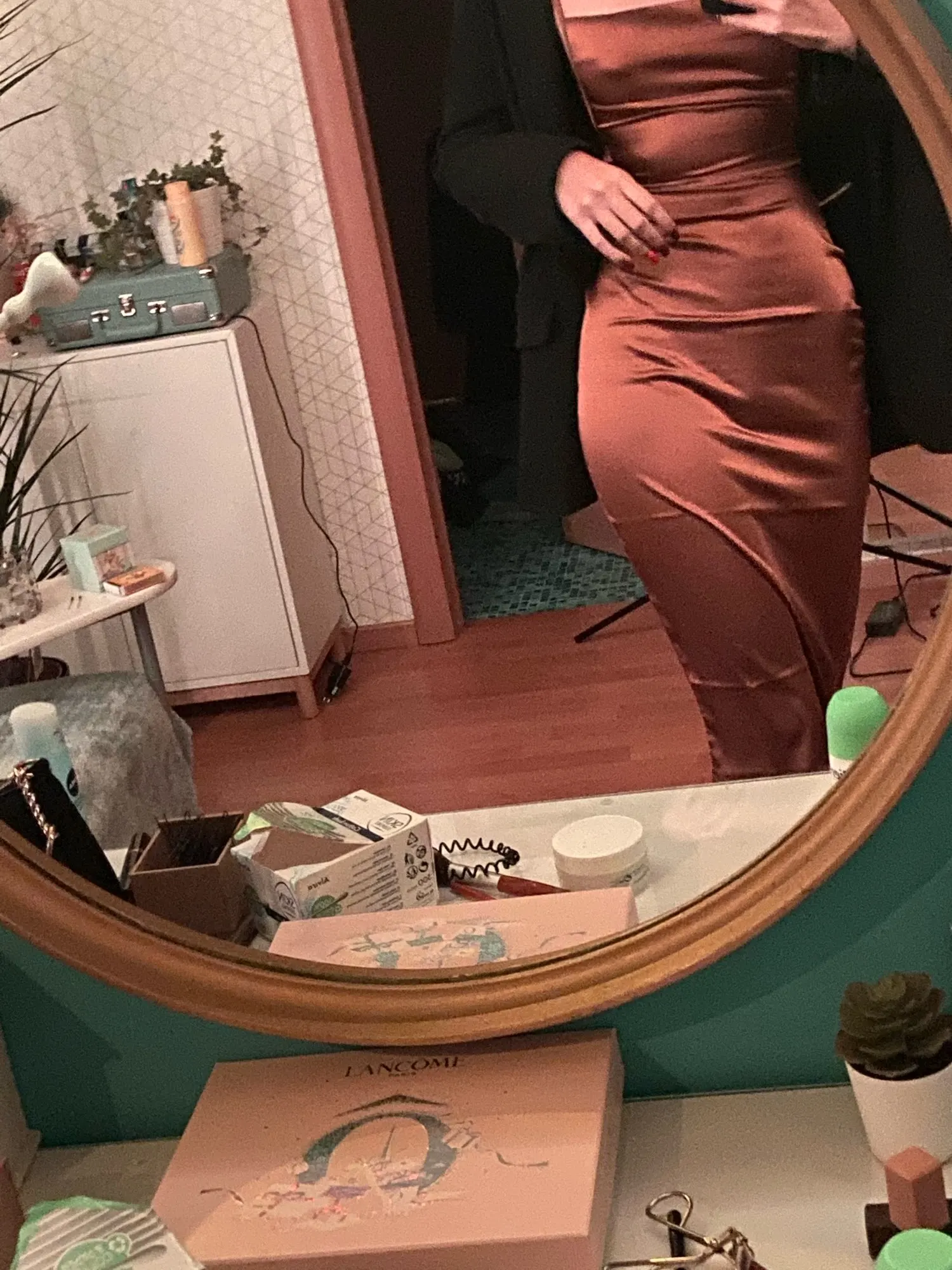 Dress fire! Sits chic, like liquid silk, very pleasant to the body. The only moment is better to wear it without linen) looks expensive.