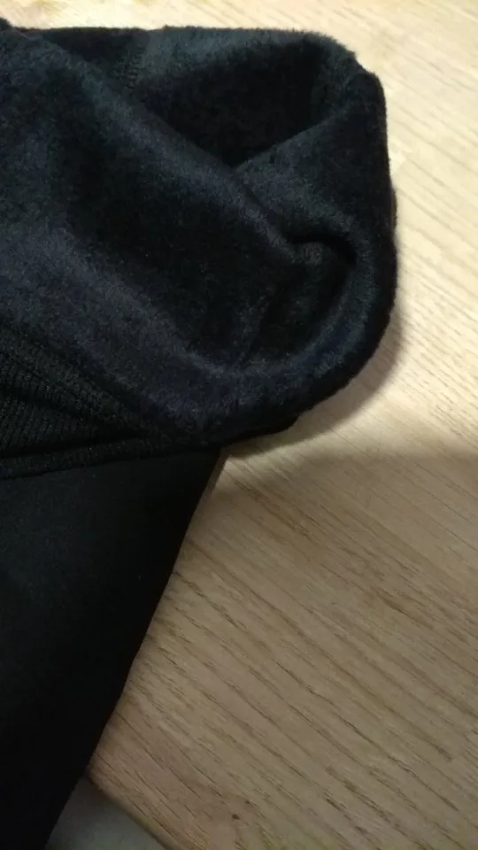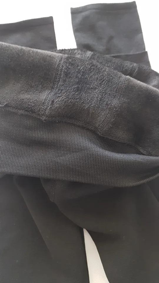 Very warm, soft interior, elastic and rises at the navel. I took size L, I make a 38 in France is perfect