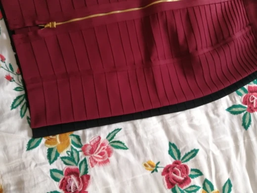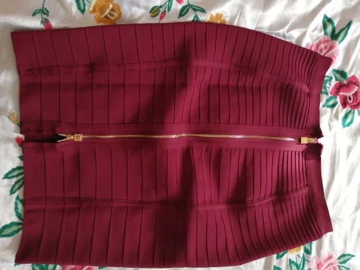 This is my second skirt from this store. The first white and it is slightly smaller (although both Size S). Otherwise, everything is fine. On my parameters 83-67-86 cm well sat down. Looks great (naturally in the photo in the home jacket and barefoot is not the same kind). The material is heavy, when walking does not bully. Lock iron