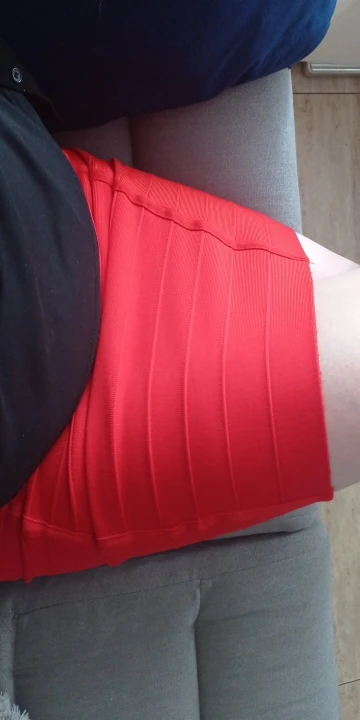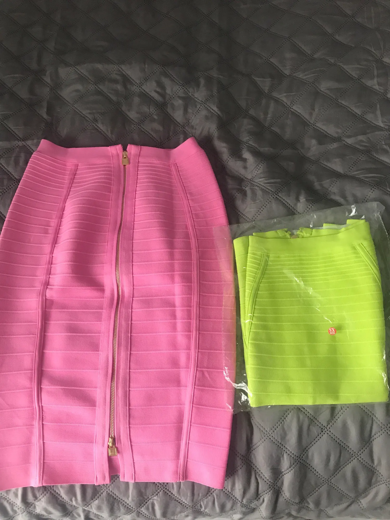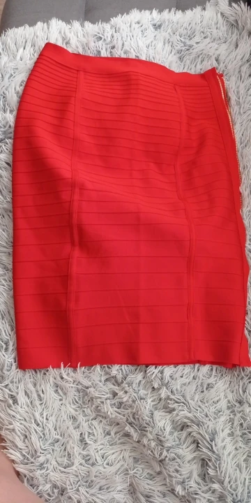 Delivery 3 weeks. The skirt is dense, elastic. Took XL on ob102 a little tight