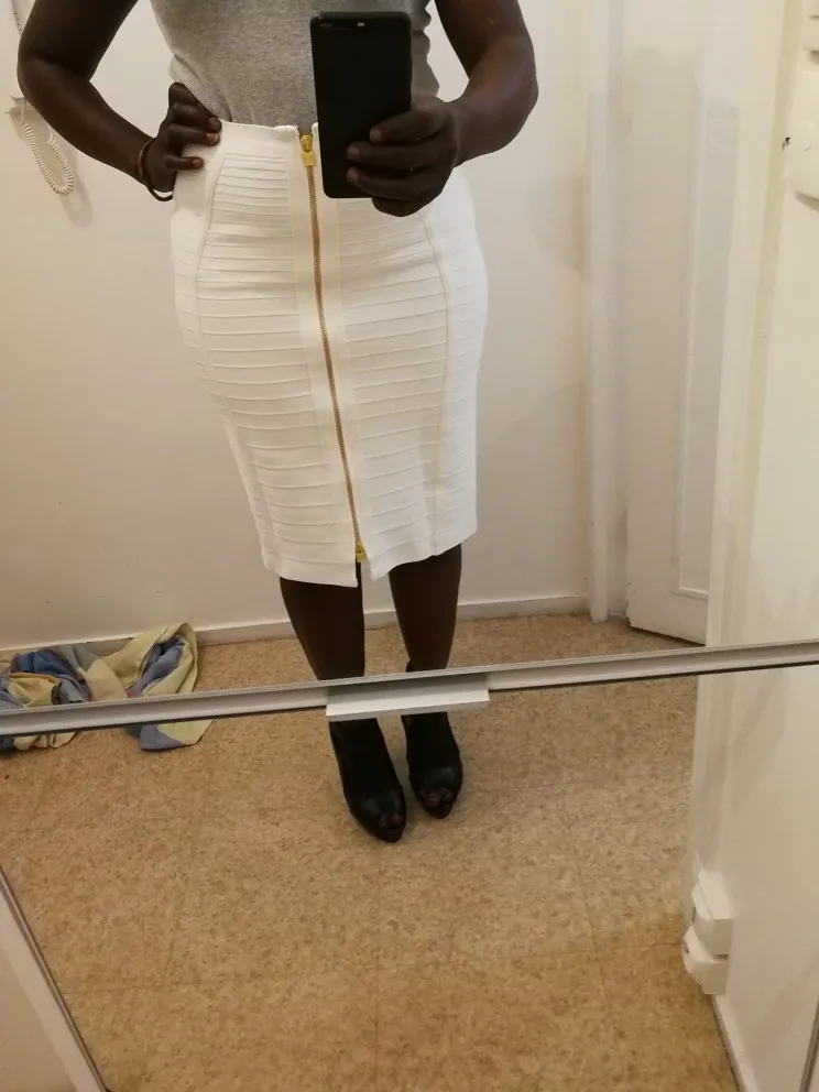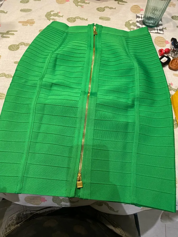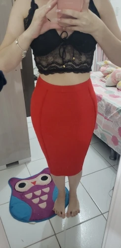 Goods received! Delivery fast-2 weeks. The skirt is very beautiful, the color is juicy, sewing quality, sits on the ass perfectly in size L, the fabric stretches. My parameters are height-158, waist-73, hips 100. I'm happy, I'll order another style from this fabric. Thank you to the store for the fast delivery, although a small spot in the middle. I recommend it!