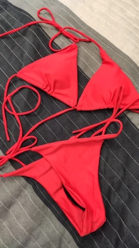 The Bikini is beautiful. I ordered it in size S the bottom is perfect because it can be regular. The top is going great too! It comes with stuffing. You can take it off.