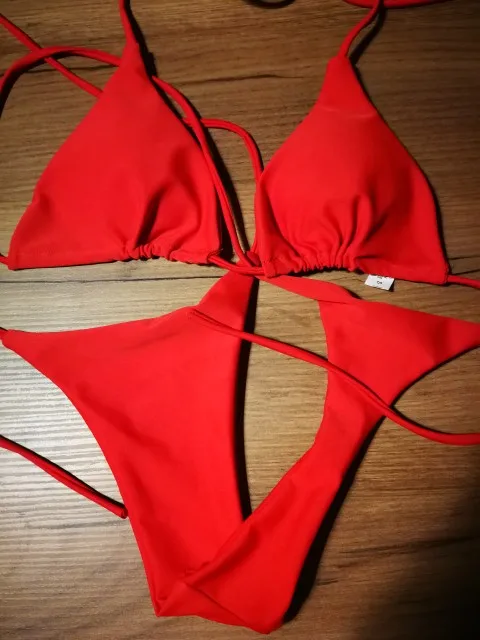 New in 2021 for 2 Piece Women Spaghetti Strap Bikini Set. Solid Colour Padded Low Waist Thong Bottoms Swimwear.