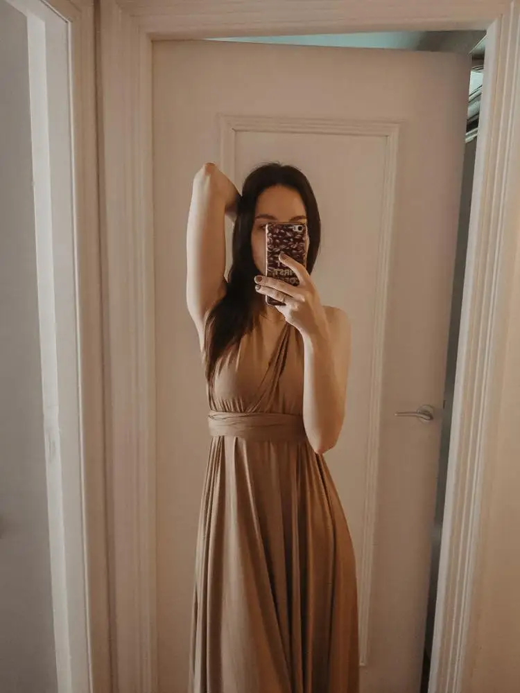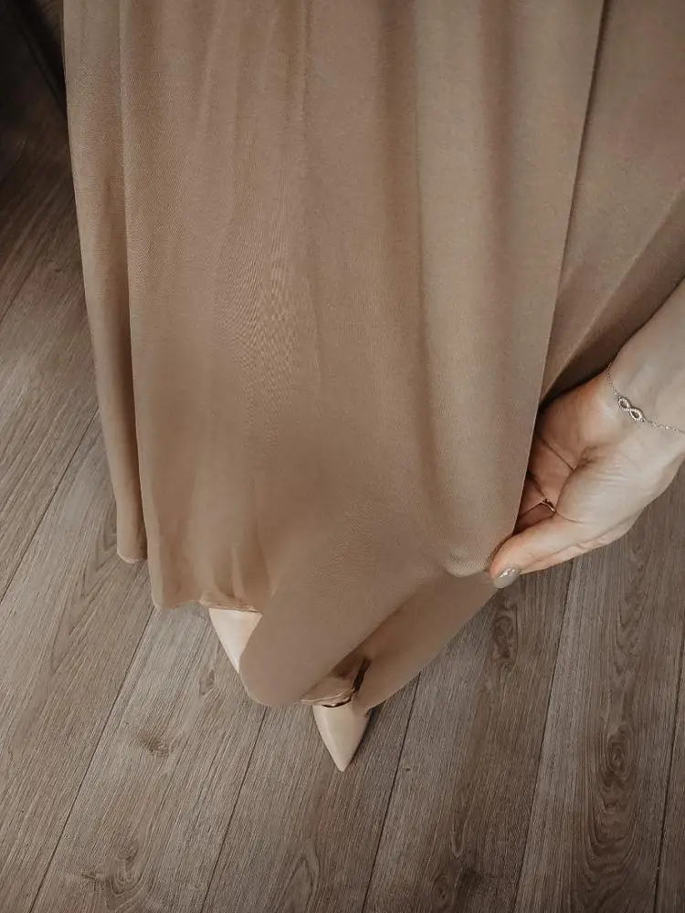 My best dress with SM! Dense, heavy, beautiful expensive-shiny fabric, oooochen satisfied with the purchase Coffee color, as I wanted, unreal I had to process the photo a little to convey the life color, when shooting on the phone the colors are slightly different