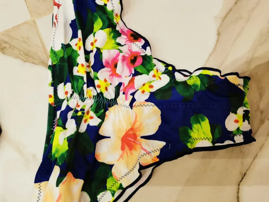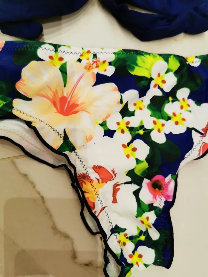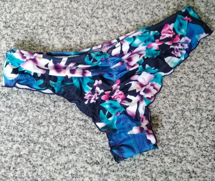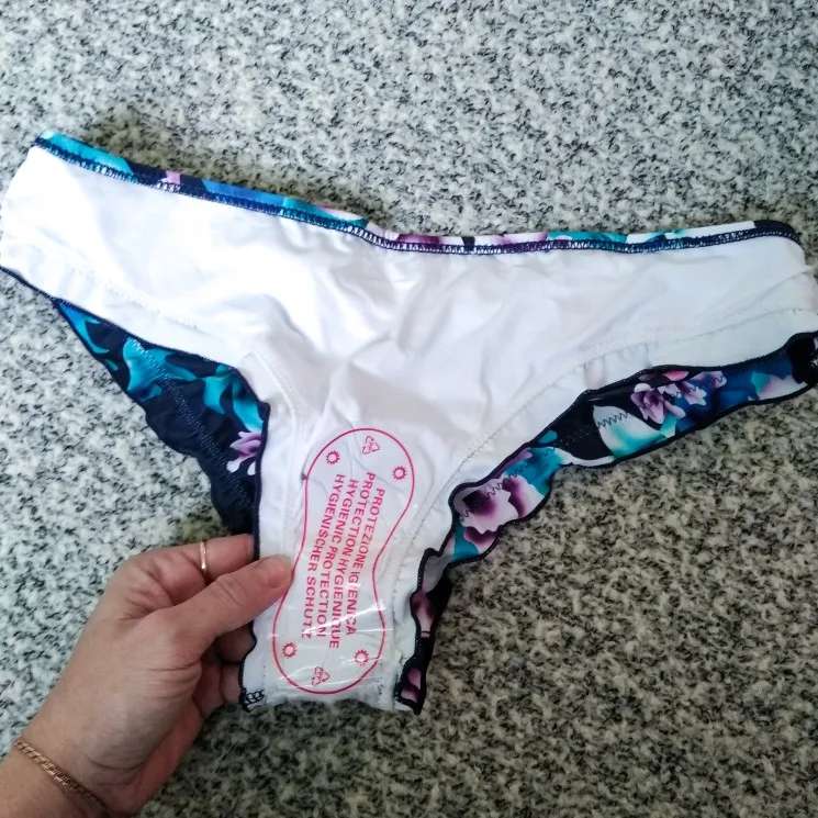 Very fast delivery. The quality is good, but only there is a smell. Stitched neatly, there are no sticking threads. I advise you to take, but for a larger size. The top is comfortable, the melting with a normal fit is not very low, and behind are sewn on an elastic band