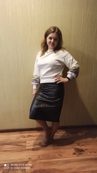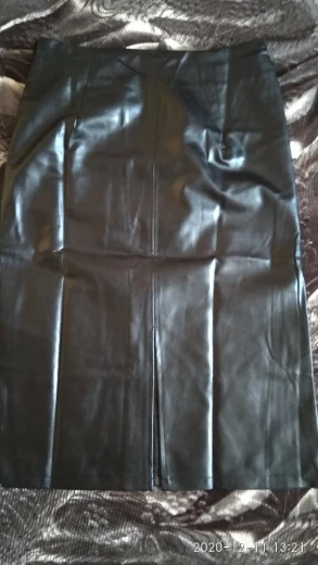 Awesome skirt, all as in the photo, narrowed to the bottom. I liked it very much! looks like leather. I ordered a second, friend. took on 44 L, butt, so be sure to see the table. No foreign smell.